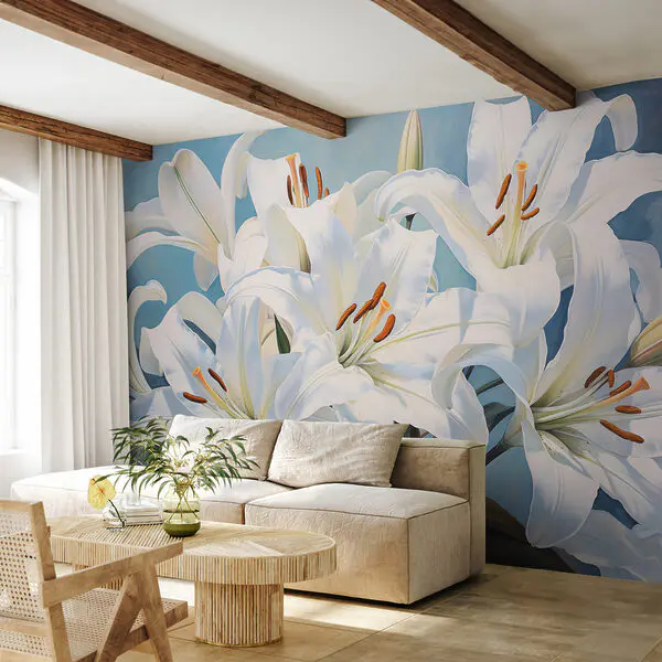 Fototapeta Lilie na tle falistego białego wzoru