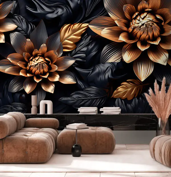 Fototapeta Metaliczna kwiatowa elegancja na pastelowym tle