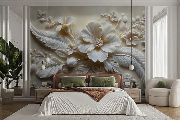 Fototapeta Białe kwiaty na białej powierzchni