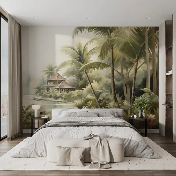 Fototapeta Bujna zieleń wypełnia tętniącą życiem scenę