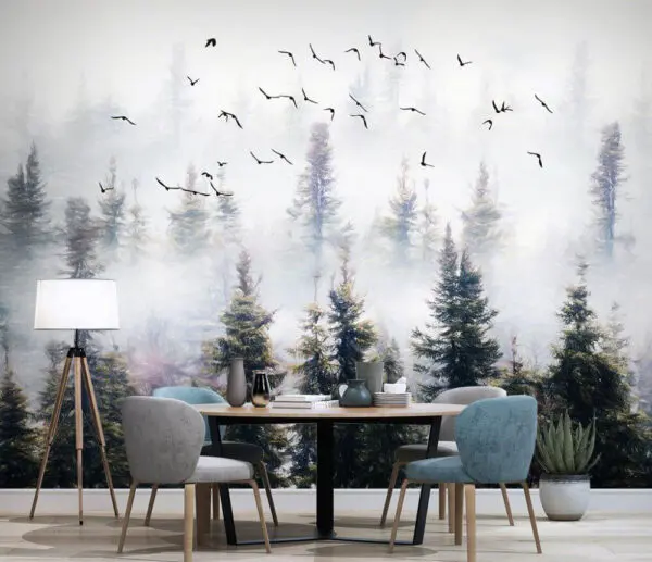 Fototapeta Grupa ptaków przelatujących nad kwiatami