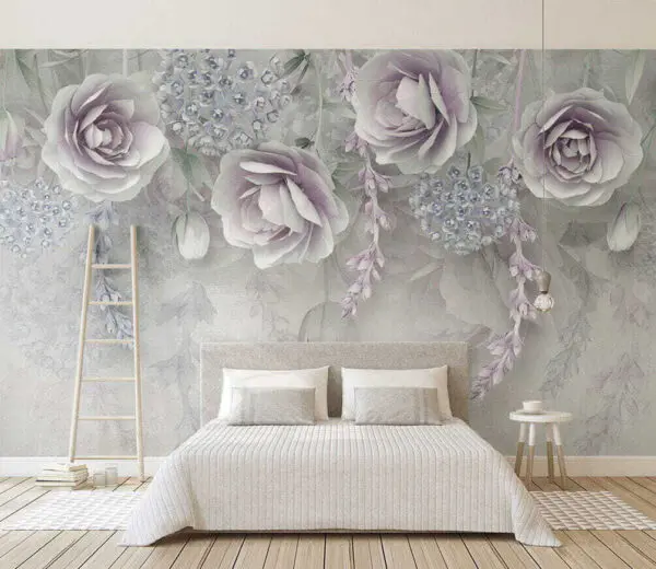 Fototapeta Fioletowe róże na tle jedwabistej tkaniny