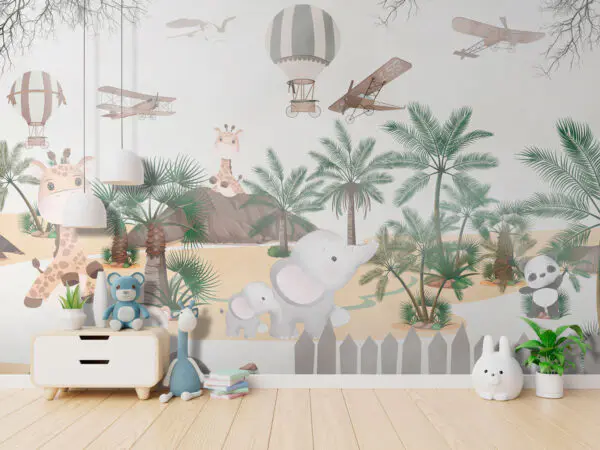 Fototapeta Żyrafy w lesie z drzewami i roślinami