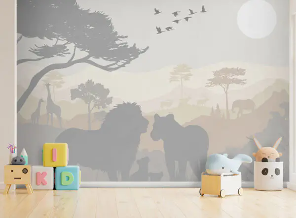 Fototapeta Mglisty krajobraz z drzewami i górami