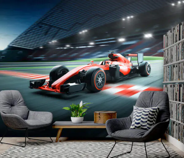 • -40% Promocja! Promocja! Fototapeta Fototapeta Samochód wyścigowy mija linię mety (SKU: u21076)