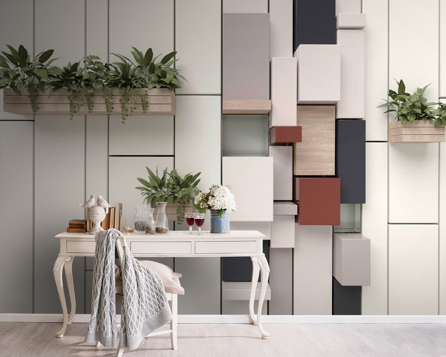 Zmień swoje wnętrze dzięki tej żywej fototapecie „Ściana z roślinami i pudełkami”. Doskonale łączy ona nowoczesne geometryczne kształty z bujną zielenią, tworząc zabawny, a jednocześnie wyrafinowany klimat. Wyobraź sobie tę fototapetę w swoim salonie – każde spojrzenie na nią będzie jak powiew świeżego powietrza. To jak posiadanie małego ogrodu, który nigdy nie wymaga podlewania. Dodatkowo delikatne odcienie nadają jej lekkości, rozjaśniając każdą nudną ścianę. Niezależnie od tego, czy pobudza kreatywność w poniedziałek, czy po prostu sprawia, że przerwy na kawę są nieco bardziej spokojne, ta fototapeta ma w sobie urok, który podniesie poziom Twojego wystroju wnętrza. Kto by pomyślał, że fototapeta może być tak zachęcająca?