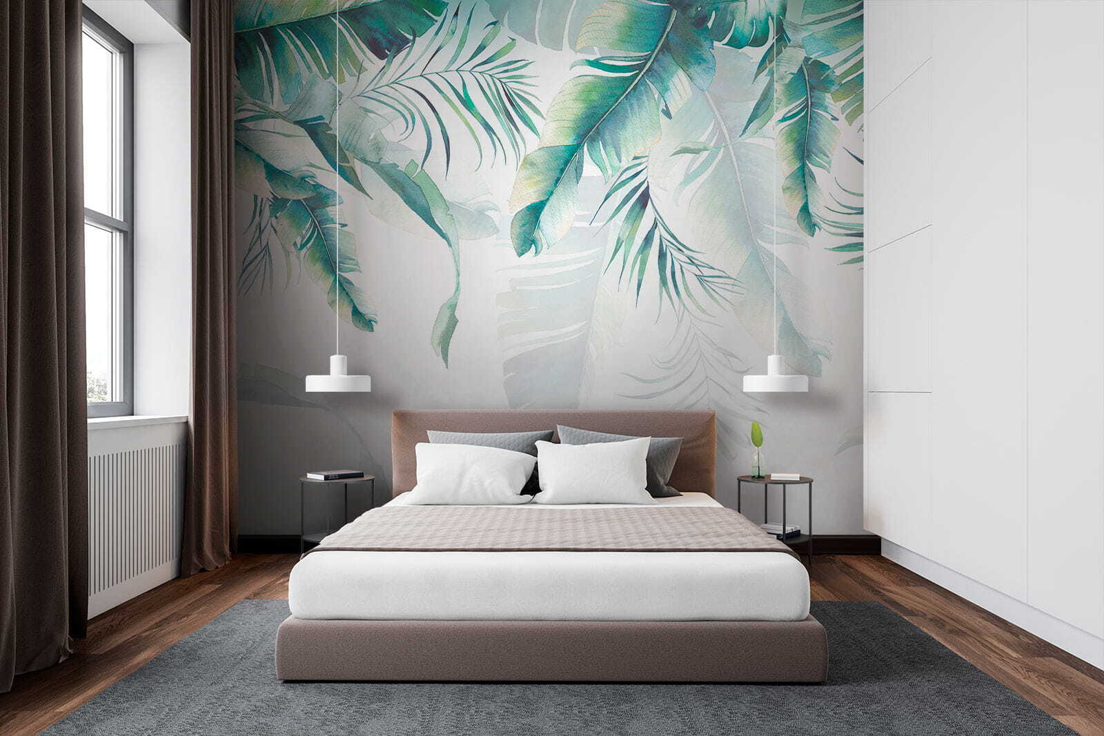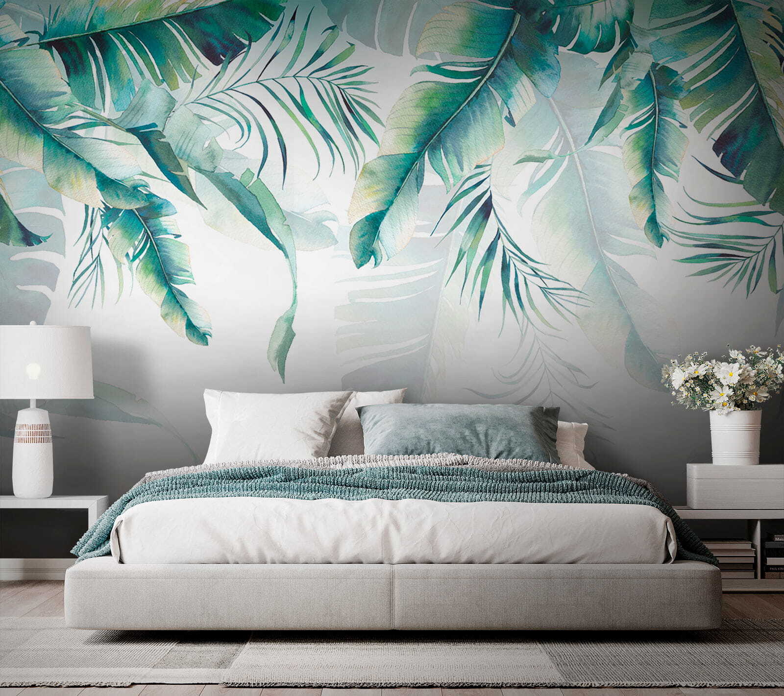 Wyobraź sobie: wchodzisz do pokoju… i bum! Przenosisz się do bujnego, tropikalnego raju. Ta fototapeta “Tropikalne liście” jest po prostu hipnotyzująca. To tak, jakby sama Matka Natura wzięła pędzel akwarelowy i poszła do miasta. Żywe zielenie i delikatne błękity liści po prostu emanują relaksem – idealne do każdej przestrzeni wymagającej spokojnego dotyku.