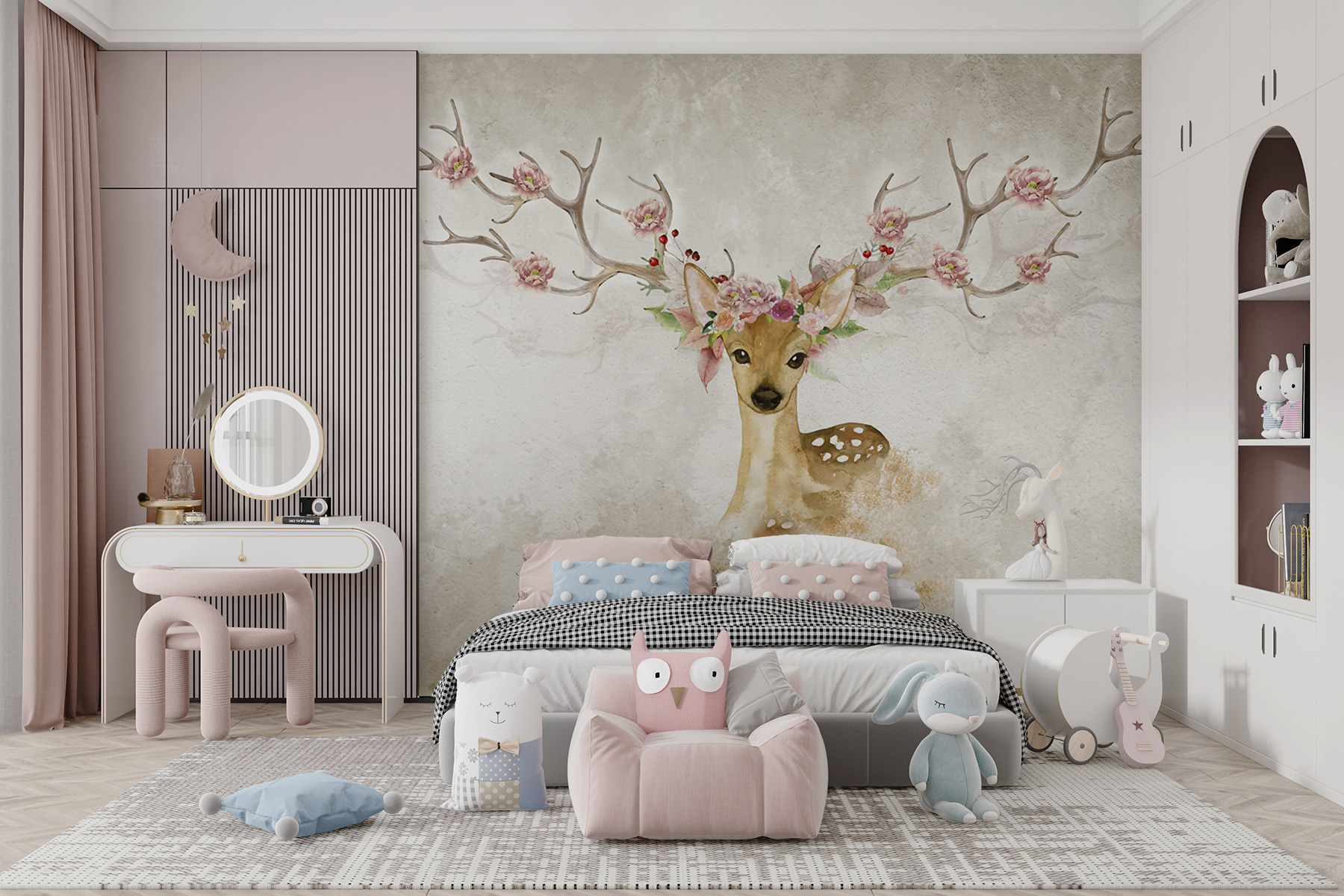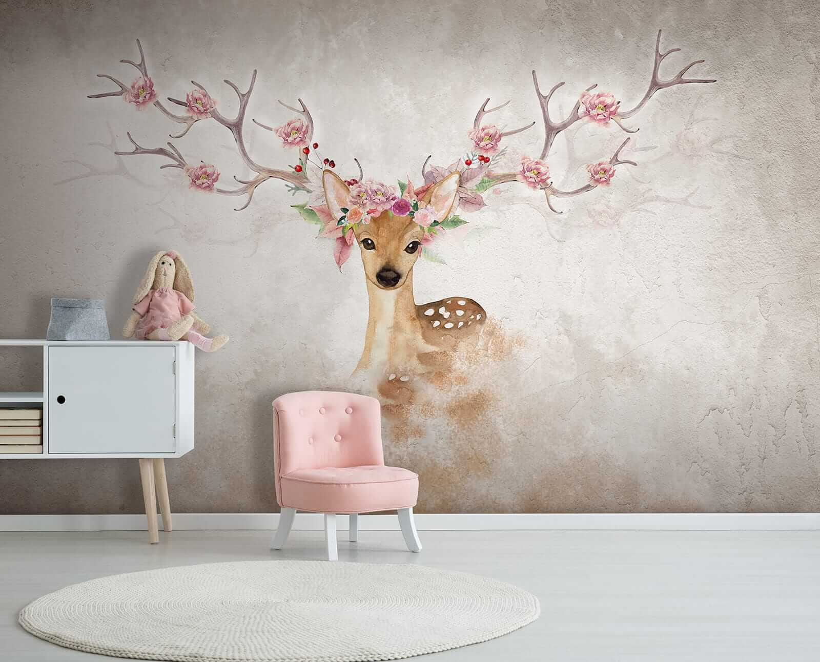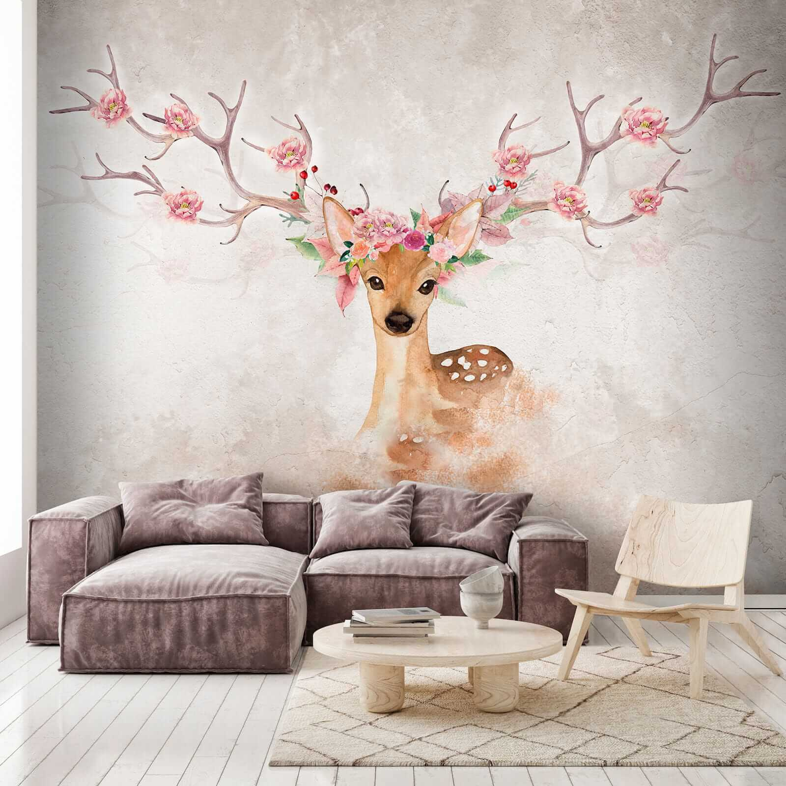Wyobraź sobie, że wchodzisz do pokoju i witasz się z tą czarującą akwarelową fototapetą przedstawiającą jelenia z kwiatami na głowie. Czyż nie jest po prostu urocza? Idealna do pokoju dziecięcego lub przytulnego miejsca, które aż prosi się o odrobinę kaprysu! Ma wspaniałą mieszankę ziemistych odcieni i delikatnych pasteli, które po prostu wydają się… cóż, magiczne. Wyobraź sobie swojego malucha śniącego pod czujnym okiem tego łagodnego stworzenia. Możesz też rozjaśnić swoją codzienną przestrzeń tym delikatnym i uroczym dziełem sztuki – gwarantowany uśmiech także dla gości! Dodatkowo, te kwiaty na porożu są po prostu zbyt piękne, nie sądzisz? To jak bajka, która ożyła na twojej ścianie. Oddychaj kreatywnością i pozwól płynąć tym marzycielskim wibracjom…