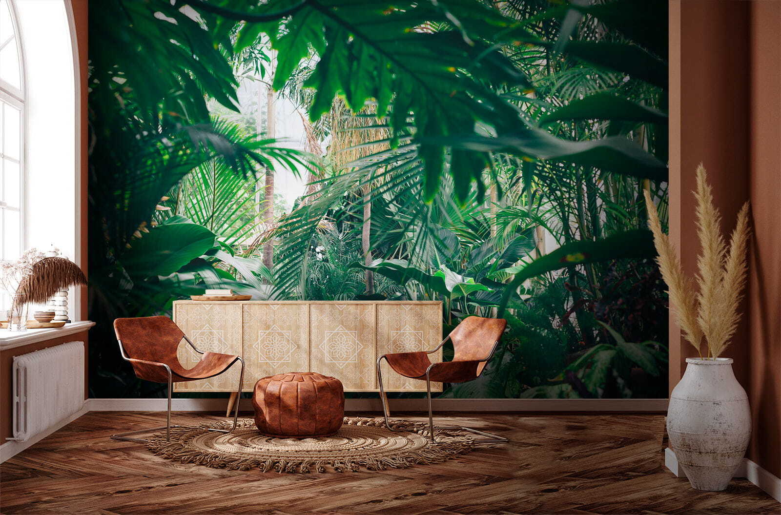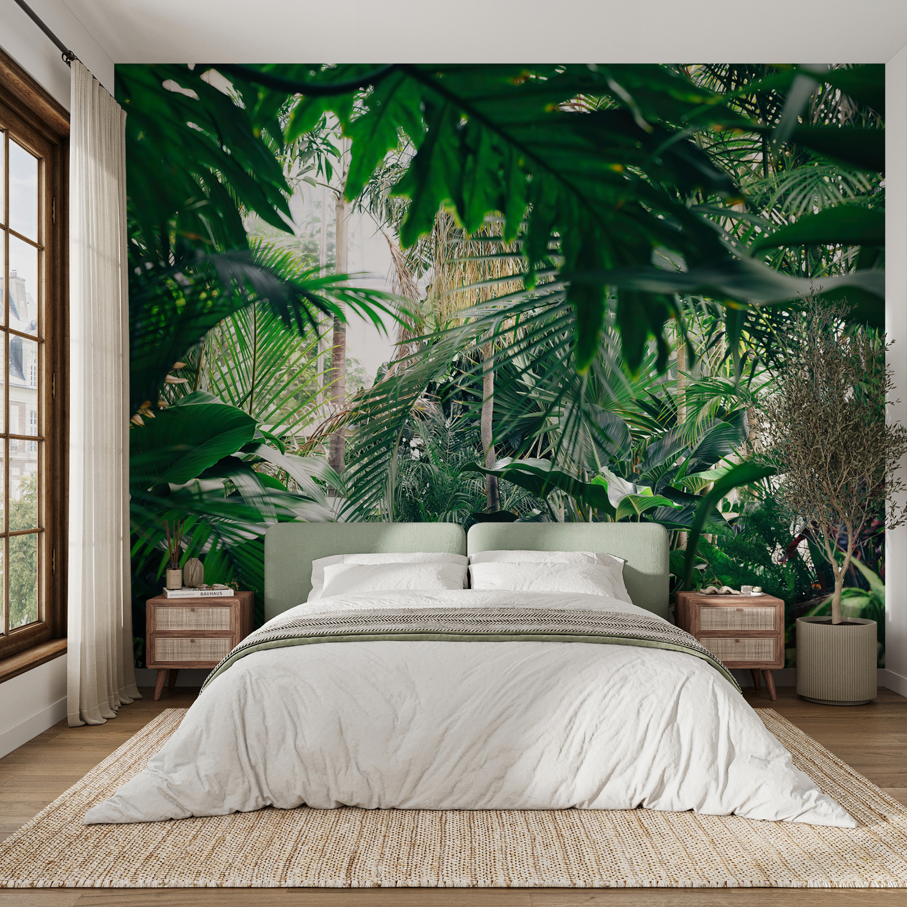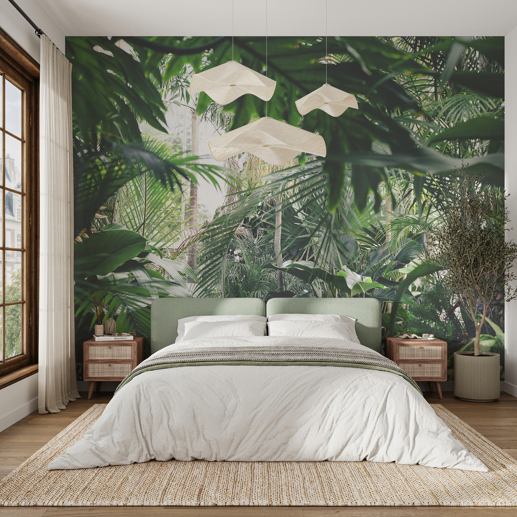Przekształć dowolny pokój w tropikalny raj dzięki tej oszałamiającej fototapecie ściennej przedstawiającej bujne liście dżungli skąpane w słońcu. Wyobraź sobie, że wchodzisz do swojego pokoju i czujesz się, jakbyś wszedł bezpośrednio do spokojnej dżungli, gdzie powietrze jest świeże, a światło słoneczne przenika przez liście. To jak przeniesienie kawałka natury do wnętrza bez sprayu na owady! Idealny dla tych, którzy pragną odrobiny zieleni, ale nie mają zielonego kciuka. Znajomi pomyślą, że znalazłeś najlepsze miejsce na wakacje w domu. Wystarczy wyobrazić sobie przytulanie się z dobrą książką lub delektowanie się filiżanką kawy w otoczeniu tej tętniącej życiem ucieczki. To nie tylko fototapeta; to powiew świeżego powietrza dla twoich ścian!