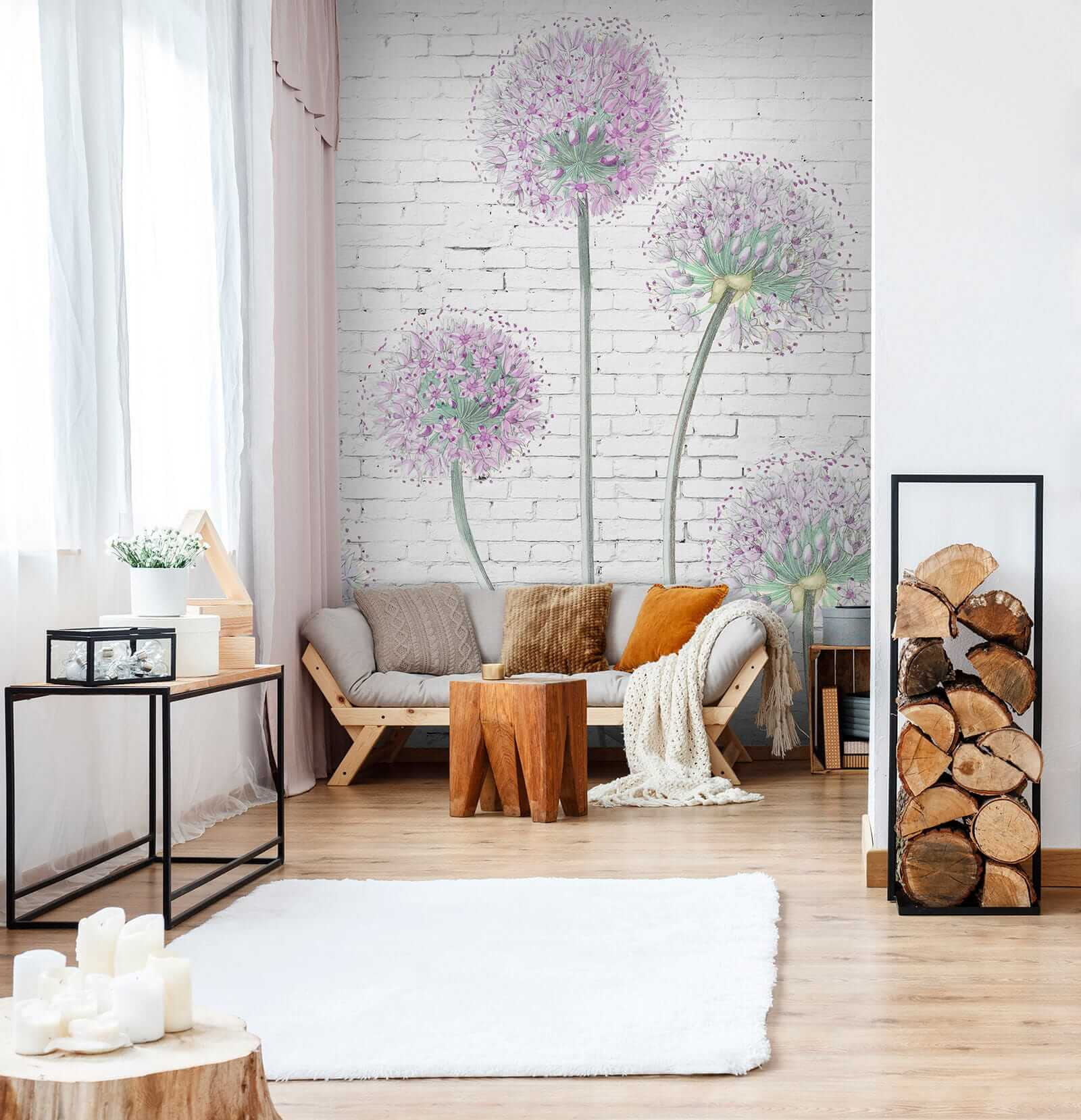 Odmień swoją przestrzeń dzięki tej kapryśnej fototapecie ściennej z uroczymi kwiatami na tle białej cegły. Wyobraź to sobie: wchodzisz do pokoju i czujesz falę świeżego, kwiatowego uroku. To jak posiadanie ogrodu, który nigdy nie wymaga podlewania. Ten projekt wnosi zabawny akcent, odzwierciedlając piękno natury bez kłopotów. Znajomi mogą zatrzymać się obok i zapytać, czy te kwiaty są prawdziwe. Idealny do przytulnego salonu lub wesołej sypialni, dodaje osobowości bez przytłaczania przestrzeni. Rozjaśnij ściany i pozwól kwiatom mówić!