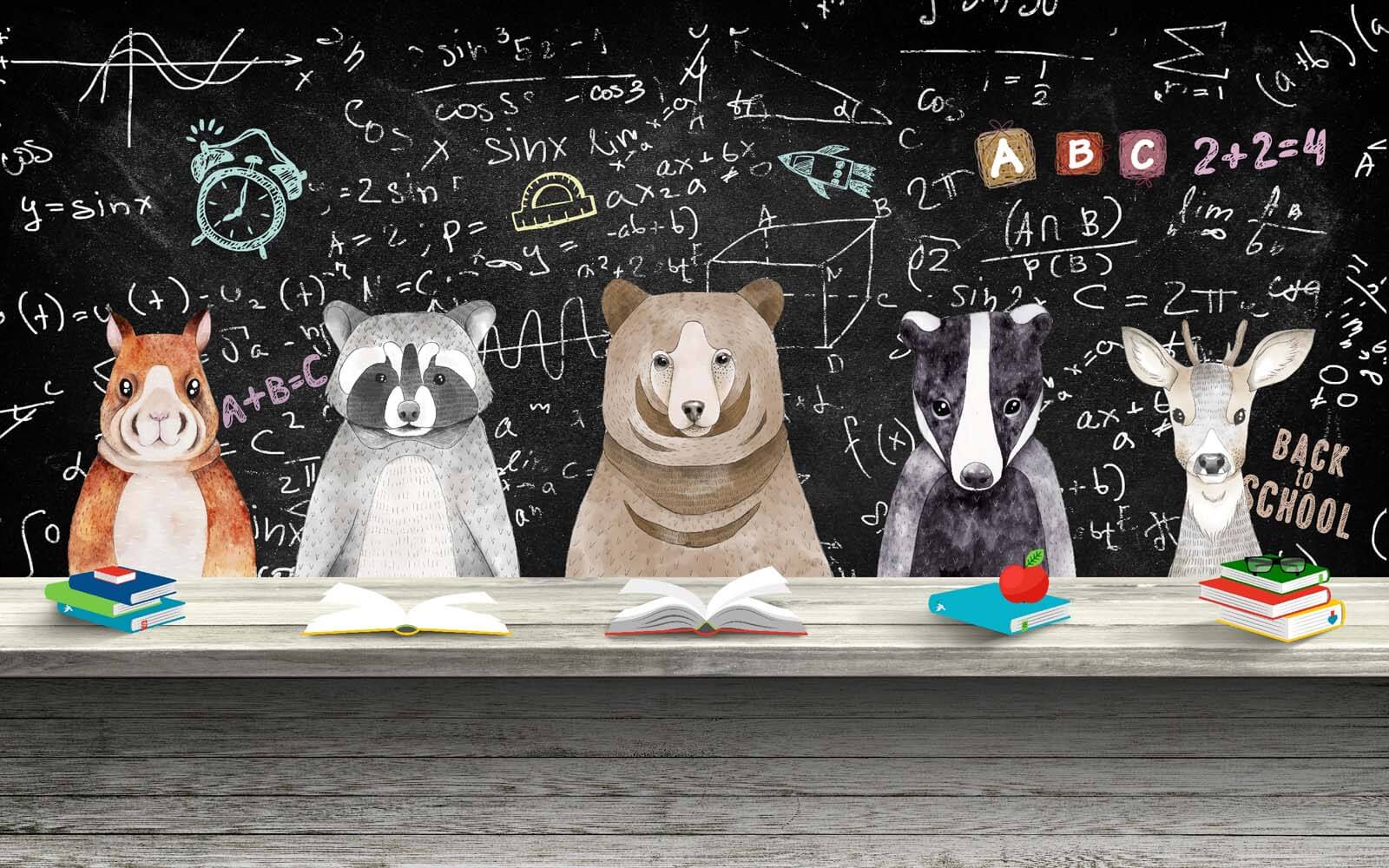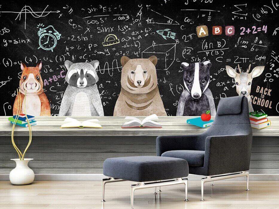 Wejdź do niezwykłej klasy, gdzie natura spotyka się z nauką! Ta urocza fototapeta przedstawia urocze zwierzęce postacie – szopy, niedźwiedzie i mądrego starego jelenia – na tle tablicy wypełnionej zabawnymi równaniami i literami. To jak codzienna zabawa w powrót do szkoły, idealna do pokoju dziecięcego lub kreatywnej przestrzeni do pracy. Wyobraź sobie śmiech dzieci próbujących uczyć się obok swoich futrzastych przyjaciół. Delikatne kolory i radosny motyw wprowadzają ciepło, sprawiając, że czujesz się jak w domu. Poza tym, kto nie chciałby, żeby niedźwiedź pilnował jego pracy domowej? Jest zarówno edukacyjny, jak i niezwykle uroczy, dodając odrobinę radości każdej ścianie!