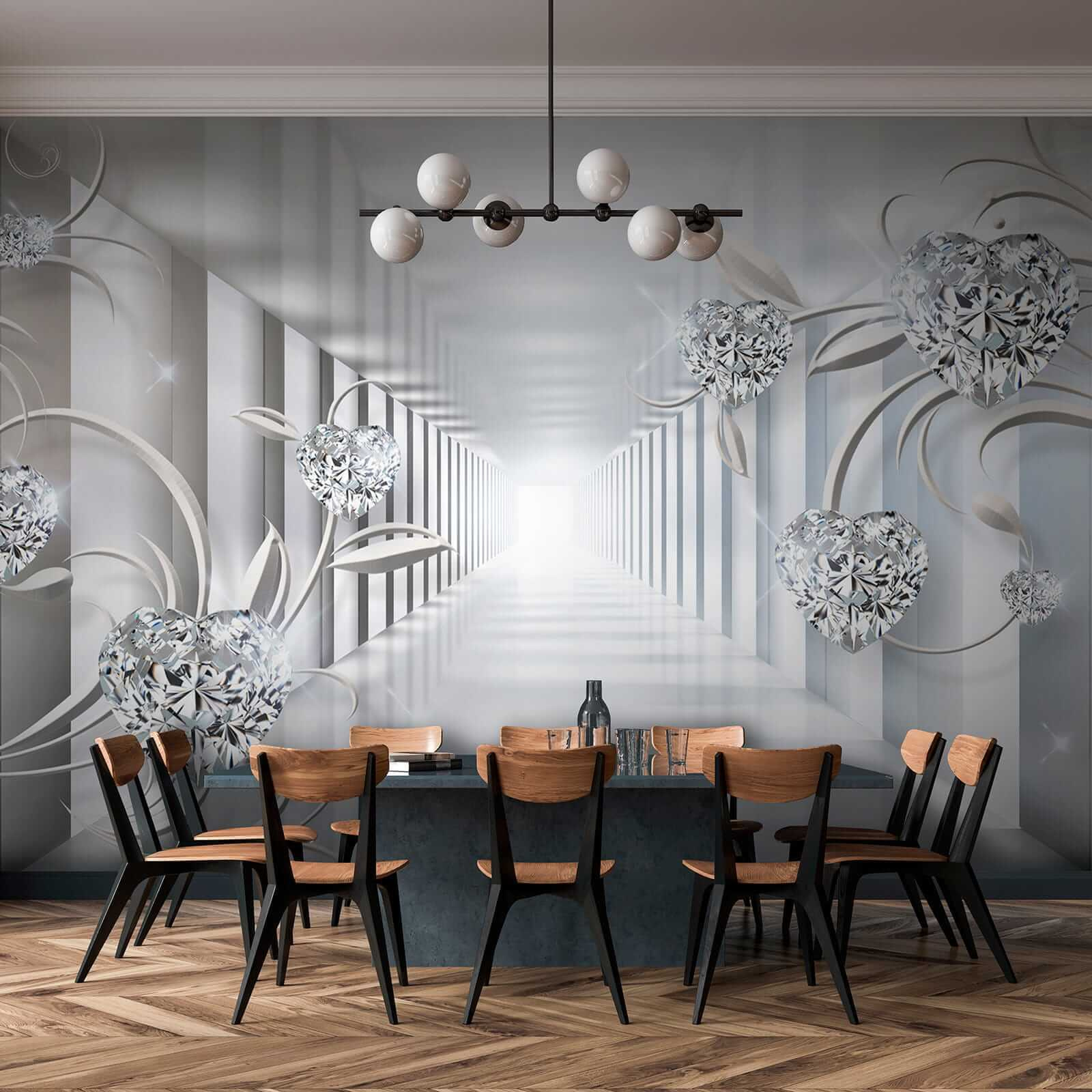 Przekształć dowolną przestrzeń w wymarzoną oazę z fototapetą ścienną Diament w kształcie serca. Ta fototapeta wnosi odrobinę kaprysu i romantyzmu, dzięki czemu idealnie nadaje się do sypialni, salonów lub wszędzie tam, gdzie przydałaby się odrobina kreatywności. Wyobraź sobie, że wchodzisz do pokoju, witany przez te oszałamiające kształty serca tańczące wśród miękkich pnączy. To tak, jakby ściany przytulały się do ciebie. Efekt 3D przyciąga, tworząc poczucie głębi, które zachęca do odkrywania tego magicznego świata. Idealny dla osób, które cenią sobie odrobinę polotu przy zachowaniu przytulności. To wspaniały wybór dla każdego, kto chce, aby jego przestrzeń była wyjątkowa.