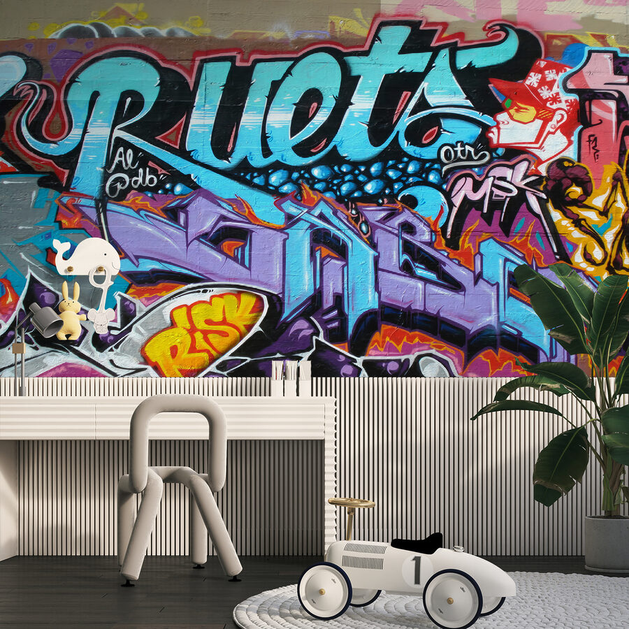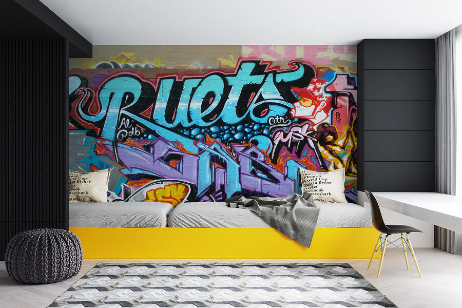 Idealna dla nastolatków lub młodych dorosłych, którzy chcą trochę miejskiego klimatu w swojej przestrzeni, ta fototapeta krzyczy osobowością – bez słowa. Ma wszystkie te żywe kolory i skomplikowane wzory, które sprawiają, że czujesz się, jakbyś spacerował po artystycznej bocznej uliczce w tętniącym życiem mieście.