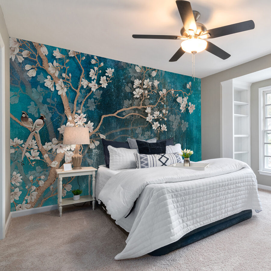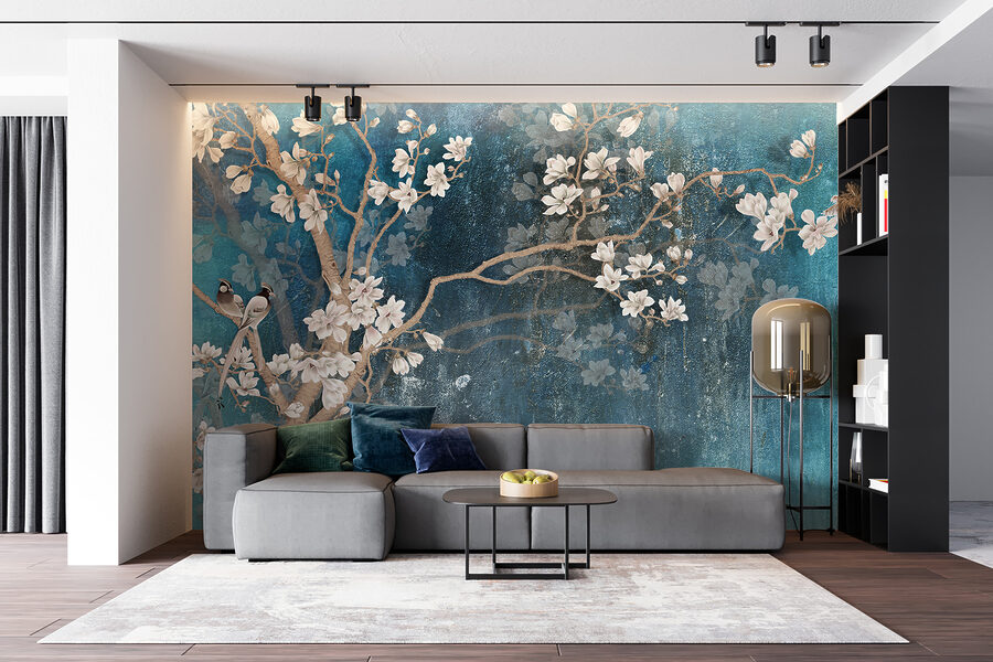 Czy kiedykolwiek marzyłeś o wprowadzeniu do swojego wnętrza odrobiny piękna natury? Ta fototapeta ścienna “Biały kwiat na niebieskim tle” jest jak powiew świeżego powietrza dla twojej przestrzeni! Wyobraź sobie delikatne białe kwiaty spływające kaskadą na marzycielskie niebieskie tło, z uroczymi ptakami siedzącymi z wielką gracją. To jak posiadanie własnego sekretnego ogrodu, bez podlewania!