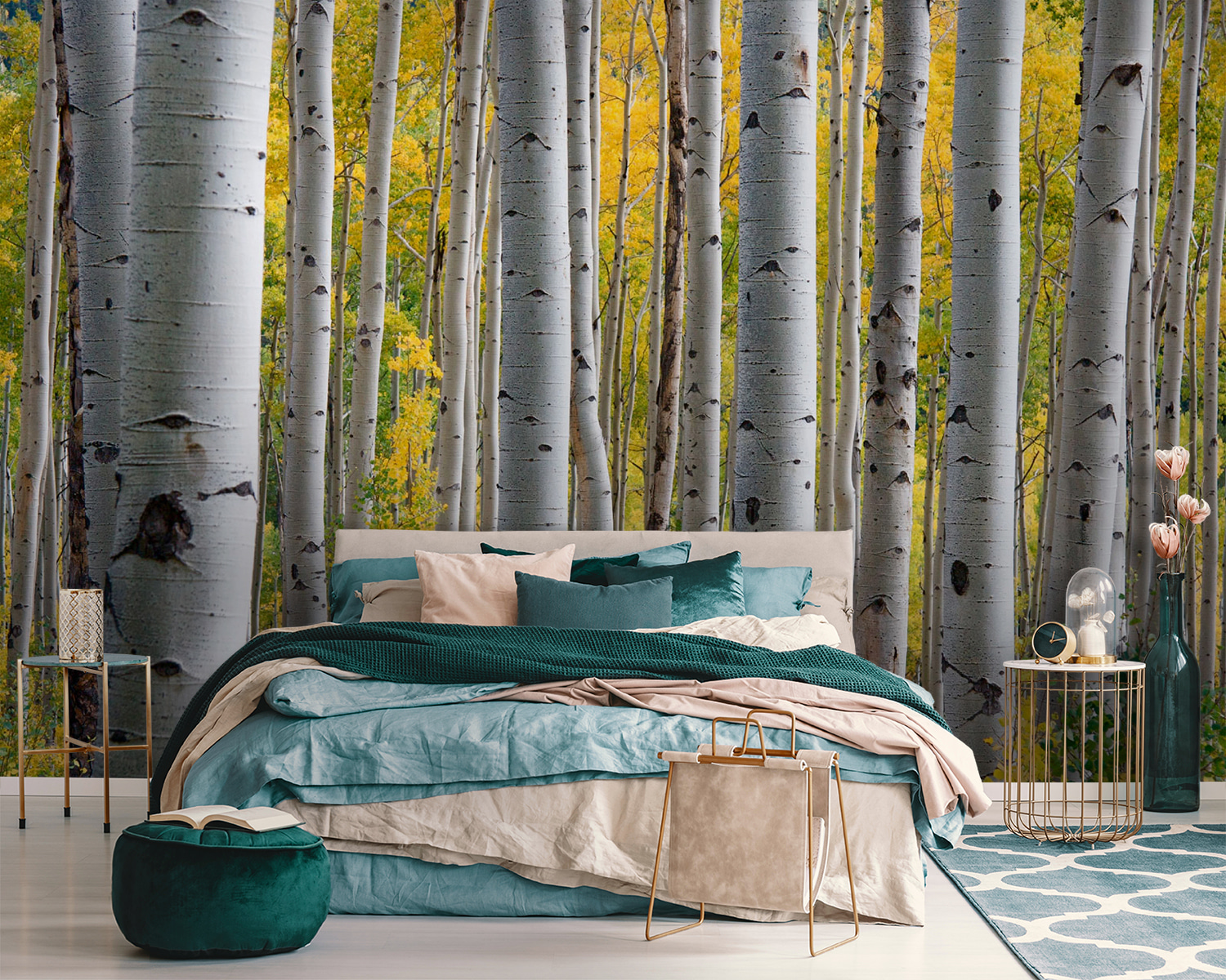 Przekształcasz przestrzeń? Ta fototapeta przedstawiająca skupisko białych drzew z ich pięknymi żółtymi liśćmi jest jak kawałek natury bezpośrednio na ścianie. Wyobraź sobie, że wchodzisz do pokoju i od razu czujesz tę pogodną atmosferę – jak spokojny spacer po lesie bez wychodzenia z domu. Wysokie, eleganckie drzewa wydają się stać na straży, tworząc delikatne tło, które wnosi ciepło i odrobinę koloru. Idealny do przytulnych zakątków, a nawet do nudnej przestrzeni biurowej, która potrzebuje trochę życia. Sprawi, że będziesz chciał nalać filiżankę herbaty, wziąć dobrą książkę i po prostu cieszyć się widokiem. Kto wiedział, że ściany mogą mieć tak przytulną iskrę?