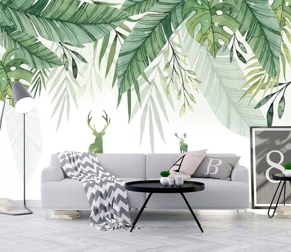 Transform your space with this stunning watercolor mural featuring a serene deer gracefully nestled among lush leaves. It’s like bringing a whisper of nature inside, and who doesn’t love a little wildlife magic? The gentle greens and misty foliage create a calm vibe that might just make you feel like you’re lounging in a forest retreat—minus the bugs. Perfect for living rooms or cozy nooks, this mural can spark conversations or simply offer a peaceful backdrop for a quiet read. Imagine sipping tea here while the world buzzes by, and watch how your walls come alive with character!