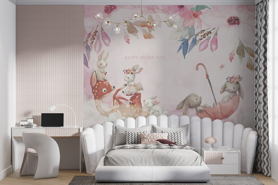 Chcesz uczynić pokój swojego dziecka absolutnie magicznym? Sprawdź tę uroczą fototapetę “Królik z kwiatami”! Idealna do pokoju córki, przedstawia najsłodszego króliczka z kwiatami na głowie – jak mała leśna księżniczka. Wyobraź to sobie: delikatne pastelowe kolory tworzące senną i uspokajającą atmosferę, dzięki której każda bajka na dobranoc będzie nieco bardziej kapryśna. Wyobraź sobie, że oczy Twojego malucha rozświetlają się za każdym razem, gdy go widzi… Czysta magia! To nie tylko fototapeta; to zaproszenie do świata wyobraźni i chichotów. I hej, kto nie chciałby mieć króliczego przyjaciela czuwającego nad nim podczas zabawy i marzeń? Ten słodki, delikatny wzór z pewnością wniesie ciepło i radość do każdej przestrzeni. Dodatkowo, jest to świetne tło dla wszystkich rodzinnych zdjęć, które będziesz cenić na zawsze. Czy nie można tego po prostu zobaczyć? Tak czarujący… tak doskonały!