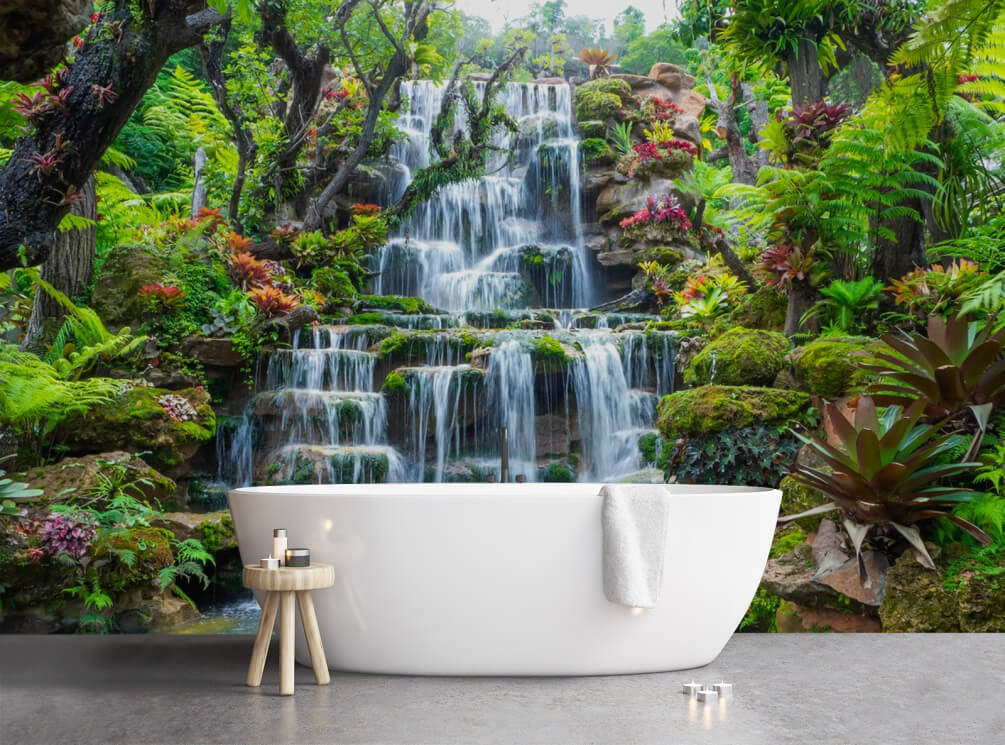 Wyobraź sobie, że wchodzisz do swojej przestrzeni, bierzesz głęboki oddech i natychmiast przenosisz się do spokojnej oazy ogrodowej. To właśnie robi ta fototapeta ścienna “Wodospad w ogrodzie” – wnosi odrobinę spokojnego piękna natury prosto do twojego domu. To jak mini-wakacje dla twoich ścian!