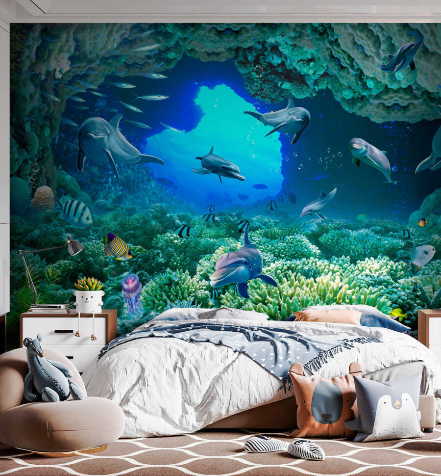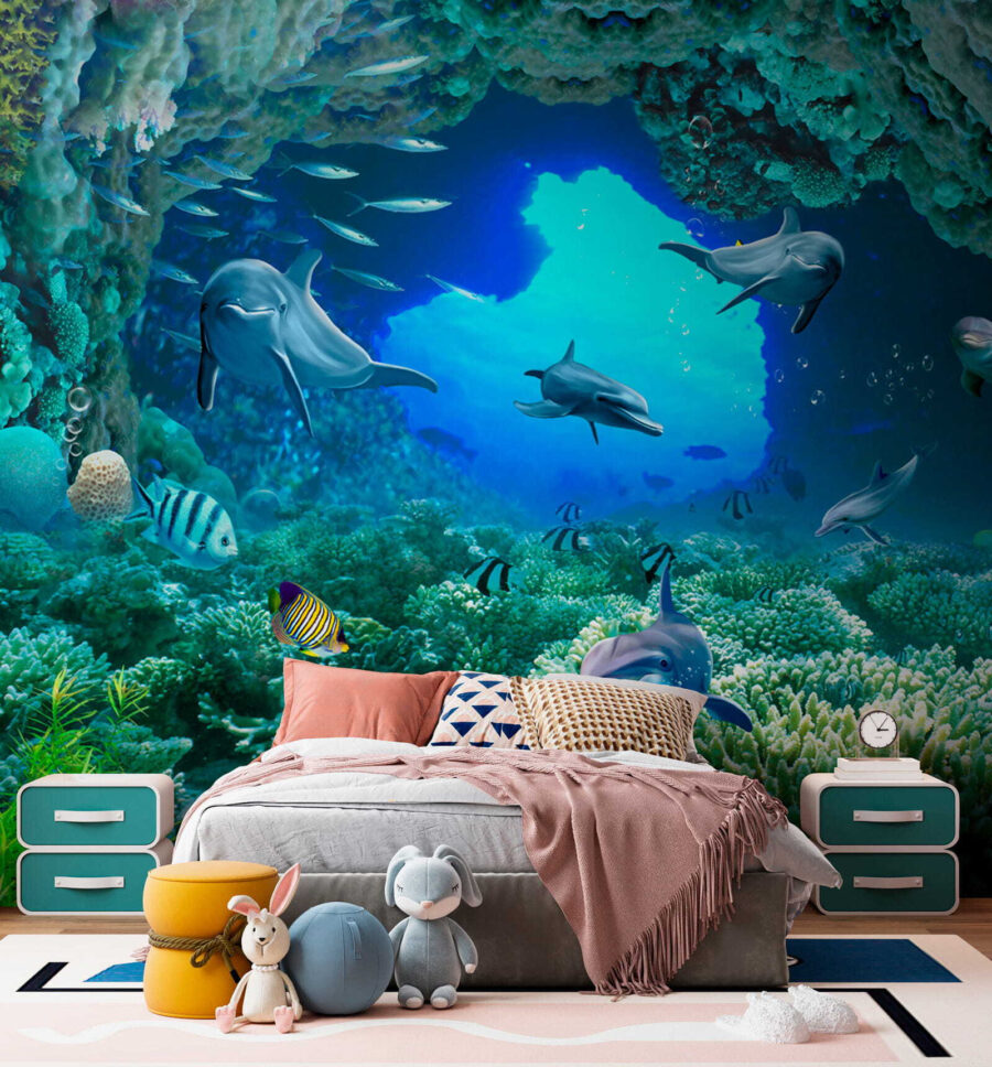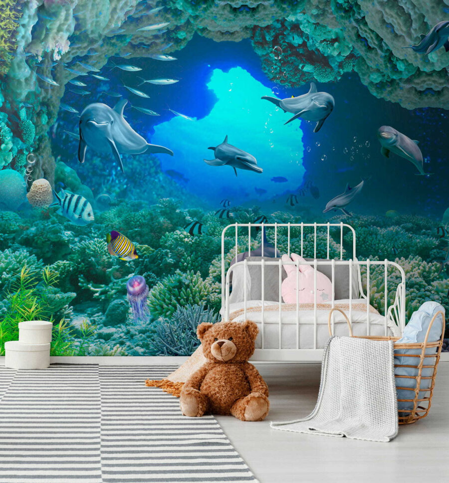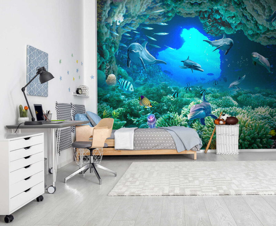 Zanurz się prosto w magii głębokiego błękitu z tą oszałamiającą fototapetą ścienną – “Delfin pływający w wodzie”! Wyobraź sobie, że budzisz się w tym tętniącym życiem podwodnym świecie w swoim salonie lub sypialni. Delfiny wyglądają tak radośnie i figlarnie, jakby zapraszały cię, byś do nich dołączył! Żywe kolory i misterne detale koralowców i ryb sprawiają, że czujesz się, jakbyś nurkował w tropikalnych wodach… bez wychodzenia z domu. Poważnie, to bilet w jedną stronę do nadmorskich klimatów, a kto nie potrzebuje ich trochę więcej?! Zarówno dzieci, jak i dorośli pokochają spokojną, ale pełną przygód energię, jaką wnosi ta fototapeta – to jak posiadanie akwarium, ale bez konieczności konserwacji. Idealna do każdego pomieszczenia, które potrzebuje odrobiny życia i kaprysu – ustaw ją i przygotuj się na zachwyt każdego dnia!