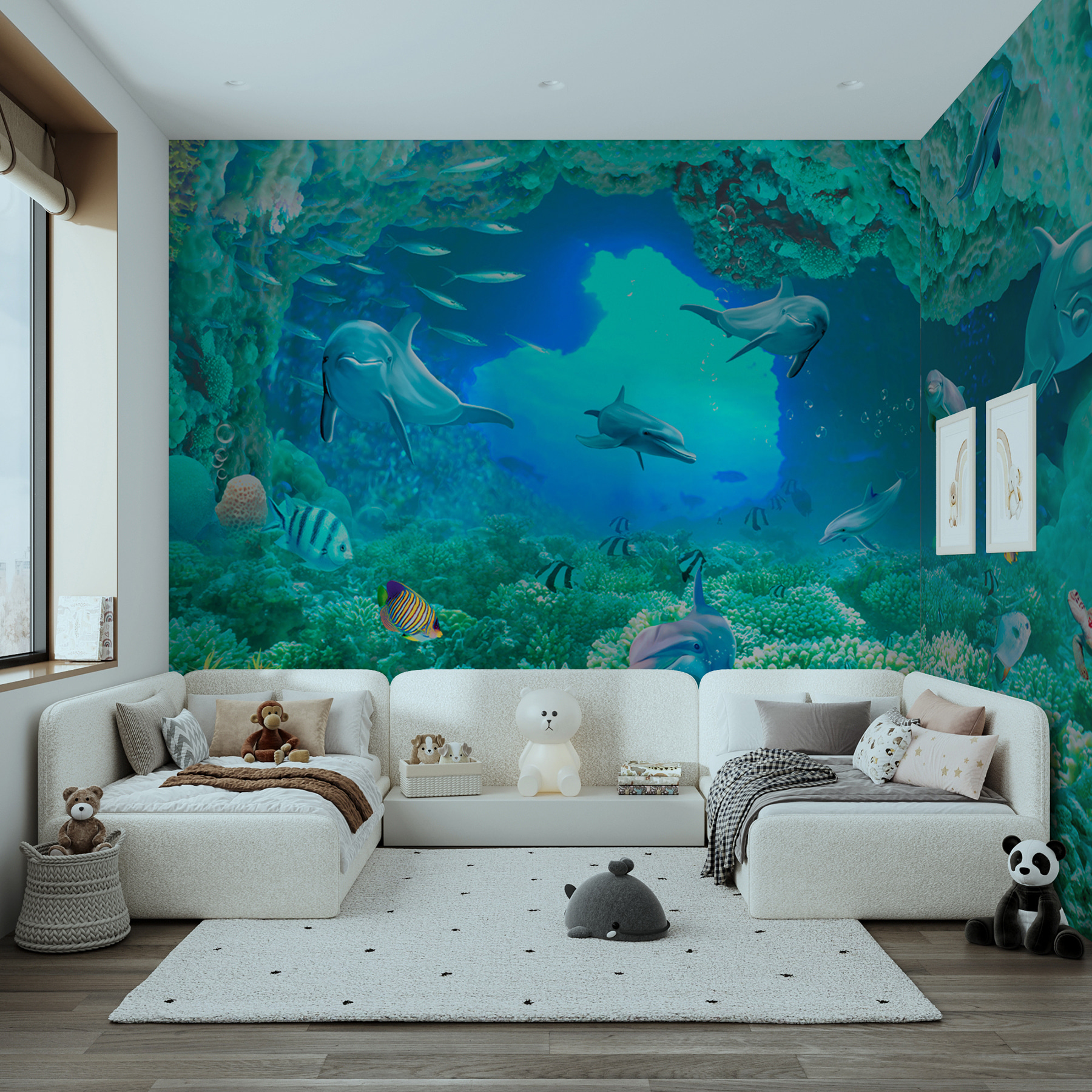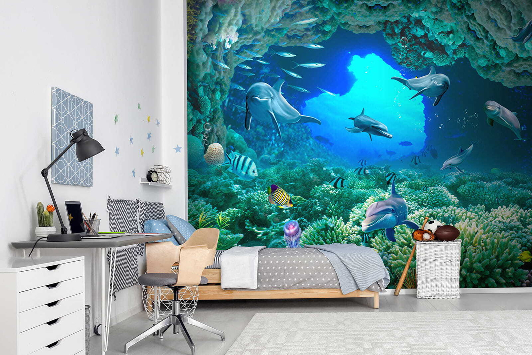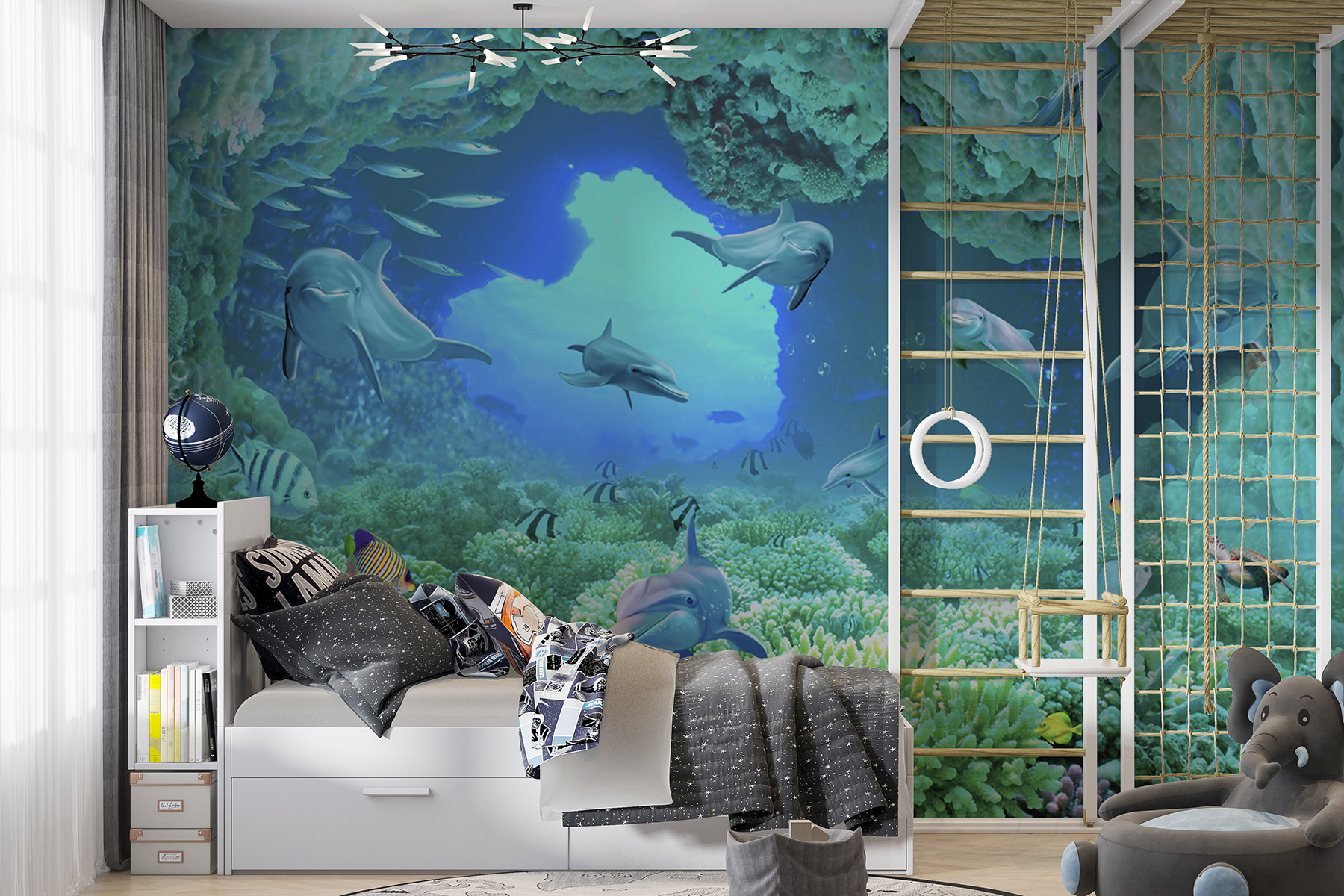 Zanurz się prosto w magii głębokiego błękitu z tą oszałamiającą fototapetą ścienną – “Delfin pływający w wodzie”! Wyobraź sobie, że budzisz się w tym tętniącym życiem podwodnym świecie w swoim salonie lub sypialni. Delfiny wyglądają tak radośnie i figlarnie, jakby zapraszały cię, byś do nich dołączył! Żywe kolory i misterne detale koralowców i ryb sprawiają, że czujesz się, jakbyś nurkował w tropikalnych wodach… bez wychodzenia z domu. Poważnie, to bilet w jedną stronę do nadmorskich klimatów, a kto nie potrzebuje ich trochę więcej?! Zarówno dzieci, jak i dorośli pokochają spokojną, ale pełną przygód energię, jaką wnosi ta fototapeta – to jak posiadanie akwarium, ale bez konieczności konserwacji. Idealna do każdego pomieszczenia, które potrzebuje odrobiny życia i kaprysu – ustaw ją i przygotuj się na zachwyt każdego dnia!