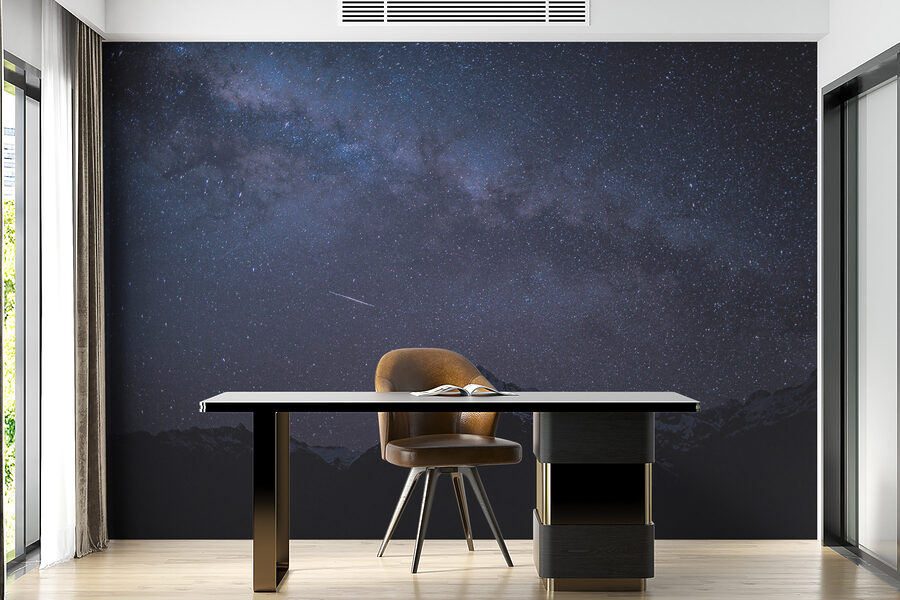 Wyobraź sobie, że wchodzisz do przytulnej przystani, w której postrzępione góry spotykają się z posypką gwiazd – tak, to magia tej fototapety! Przekształca ona twoją ścianę w zapierający dech w piersiach nocny krajobraz, zapraszając spokój gór wprost do twojej przestrzeni. Wyobraź sobie przytulny fotel, może ciepły napój w dłoni, podczas gdy oczy dryfują w kierunku szczytów, które zdają się szeptać tajemnice wszechświata. To jak własna mała ucieczka, idealna do marzeń na jawie lub nocnych pogawędek. Poza tym, kto nie chciałby zaimponować gościom widokiem, który mówi: “Hej, jestem głęboko w górach, przynajmniej pod względem wystroju!”. Chodzi o stworzenie tego chłodnego klimatu. Idealny do każdego zakątka – sypialni, salonu, a nawet kreatywnego miejsca pracy.