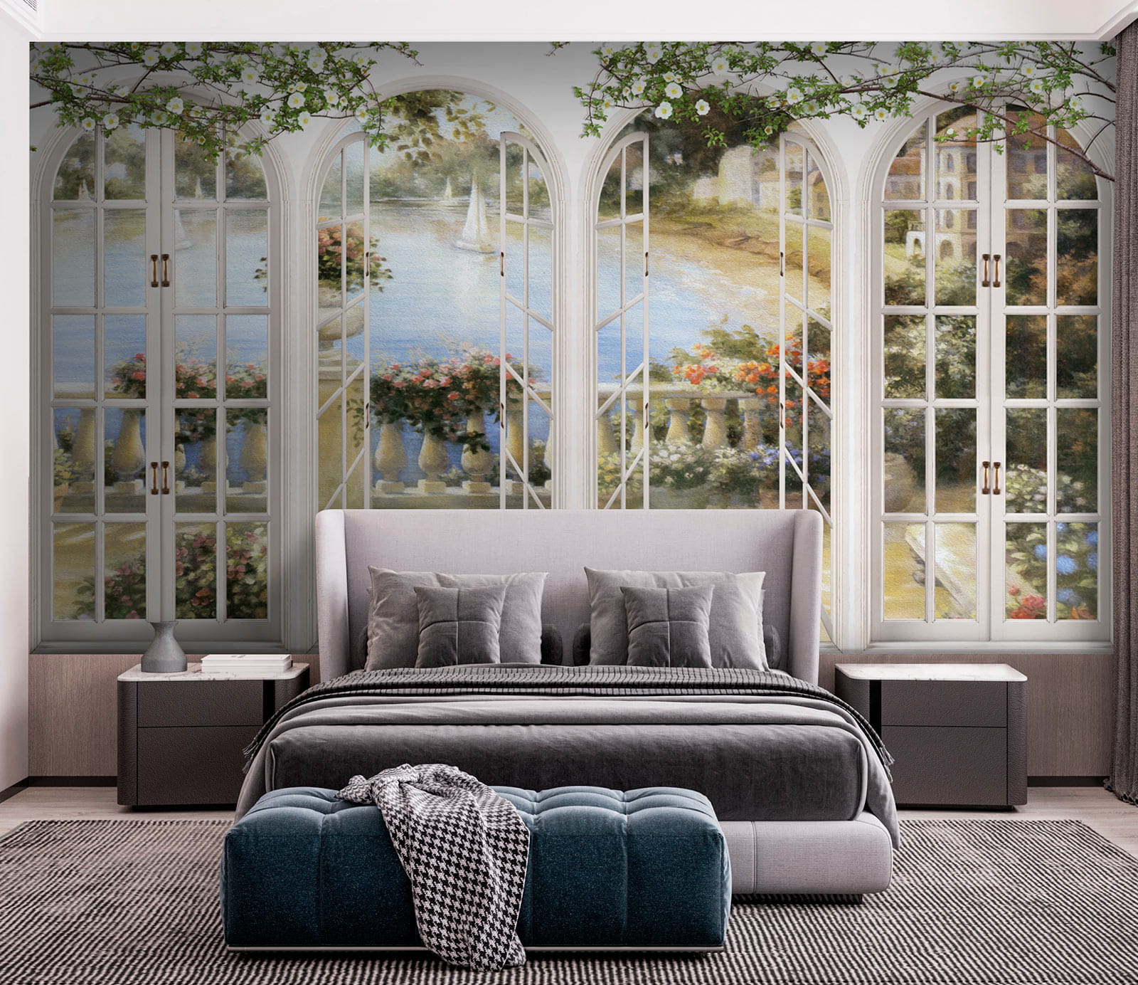 Czy kiedykolwiek chciałeś wnieść do wnętrza nieco więcej zewnętrza? Ta fototapeta “Sceniczny widok przez łukowe drzwi” właśnie to robi! Wyobraź sobie, że każdego ranka budzisz się w tej uroczej scenerii – te eleganckie łukowe drzwi otwierające się na wspaniały taras, kwiaty w pełnym rozkwicie i spokojne jezioro. To jak senna ucieczka bez wychodzenia z pokoju. Idealny do nadania małym przestrzeniom większego charakteru lub nadania pomieszczeniu świeżego, otwartego klimatu. I hej, to o wiele tańsze niż remont! Niezależnie od tego, czy jest to przytulny kącik do czytania, czy salon, ta fototapeta natychmiast powiększy twoją przestrzeń – a kto nie kocha dobrego widoku, nawet jeśli jest tylko na ścianie?