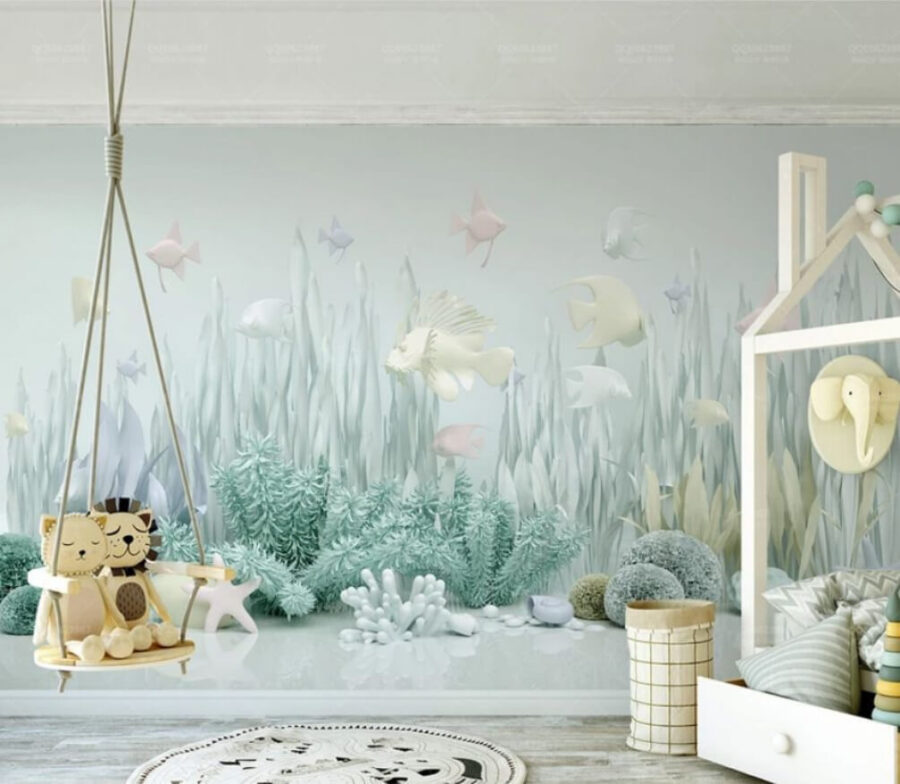 Dive into a serene underwater world with the “Wall Murals Sea Life with Fish and Plants.” This mural isn’t just a decoration; it’s a calm escape right on your wall. Picture strolling through a gentle sea garden, where pastel fish glide by and soft green plants sway like they’re dancing to the ocean’s rhythm. It’s like bringing a piece of the coast into your living room, without any sand in your shoes.