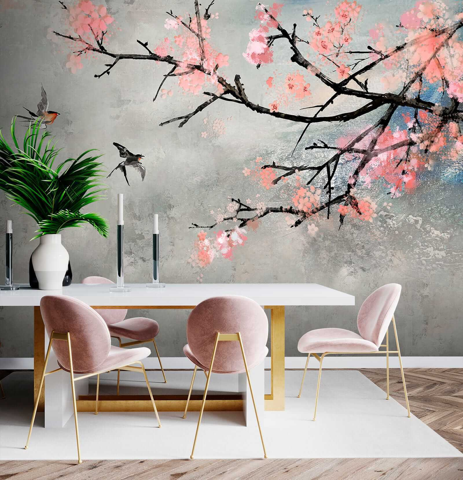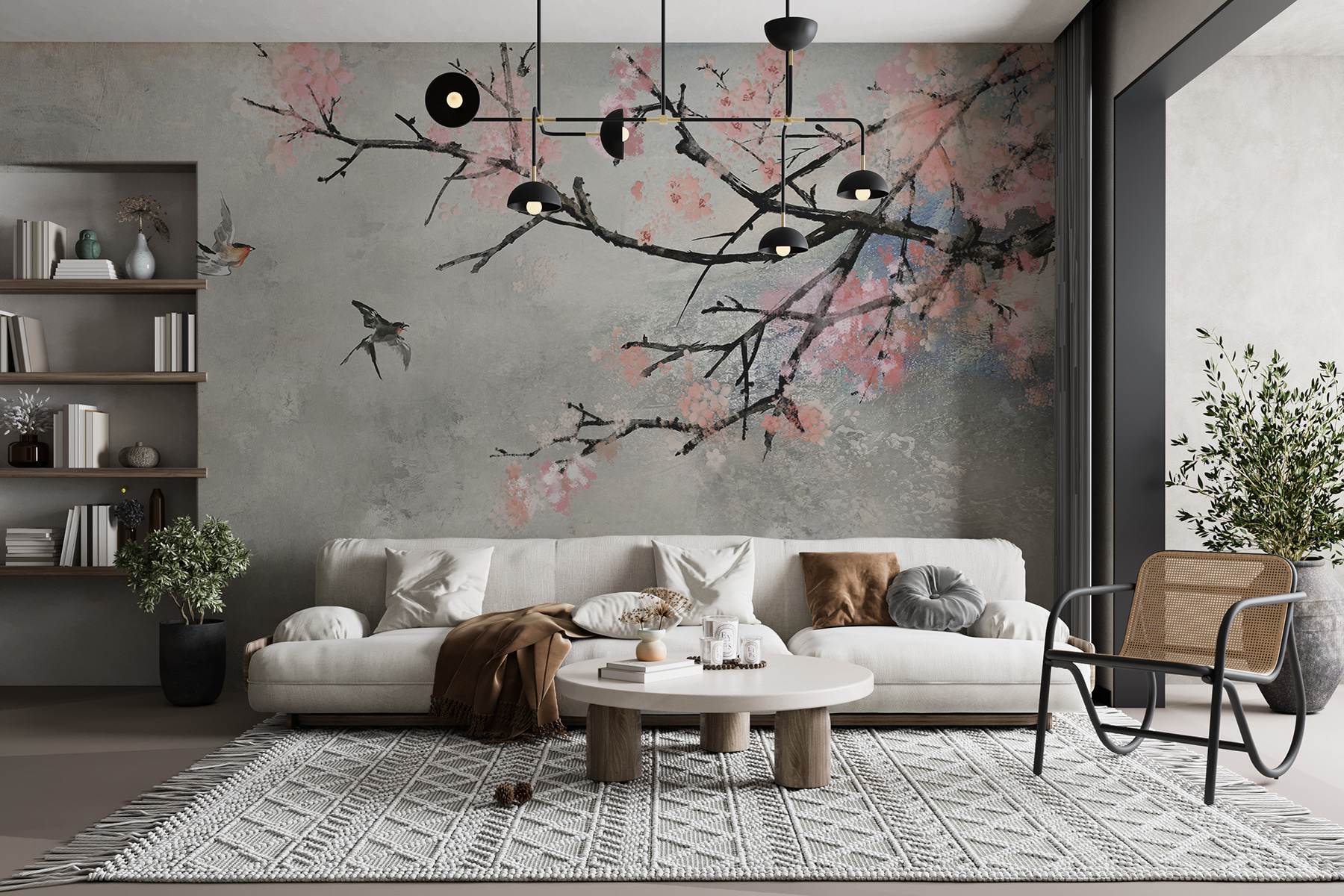 To jak wieczny wiosenny dzień na ścianie, z tymi delikatnymi różowymi kwiatami i wdzięcznymi gałęziami. Wyobraź sobie, że popijasz herbatę, czujesz się zainspirowany i niemal słyszysz delikatny trzepot skrzydeł. Idealny do kącika do czytania lub kącika zen. Ponadto ma ten magiczny dotyk – dzieło sztuki, które czuje się żywe i wywołuje uśmiech za każdym razem, gdy się je zobaczy. Niezależnie od tego, czy dążysz do spokoju, czy kreatywności, ta fototapeta jest przepustką do pięknej ucieczki.