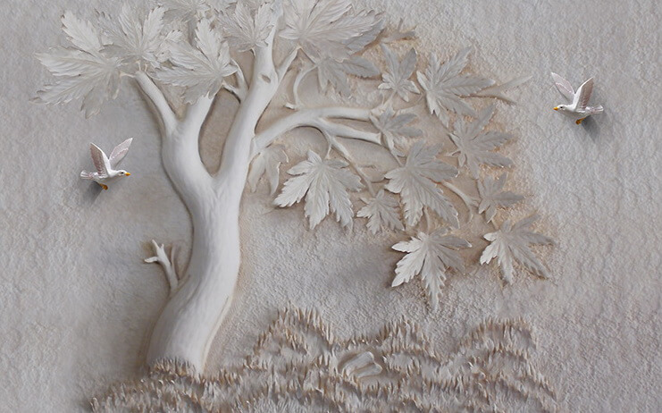 Imagine a serene moment every time you walk into the room. This mural, “Bird Flying Over a Tree,” does just that with its gentle, 3D design that seems to breathe life into your walls. With a tree standing tall and two little birds playfully taking flight, it might just inspire daydreams about peaceful escapes.