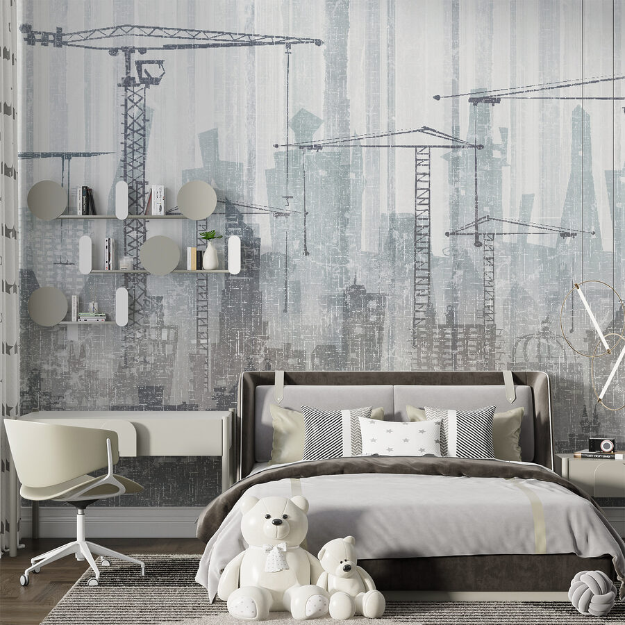 Sprawdź tę ciekawą fototapetę ścienną “Pejzaż miejski z żurawiami” – idealną dla każdego, kto lubi miejskie klimaty. Wyobraź sobie, że patrzysz na swoją ścianę i widzisz ten odważny, geometryczny wzór żurawi stojących wysoko na tle nowoczesnego miasta. Ma ten modny, niedokończony wygląd, który można zobaczyć w najlepszych dekoracjach w stylu industrialnym. Stonowane szarości i biele mogą wydawać się proste, ale tworzą niesamowitą głębię przypominającą 3D, która prawie sprawia, że czujesz się, jakbyś stał w środku tętniącego życiem placu budowy – na szczęście bez hałasu!