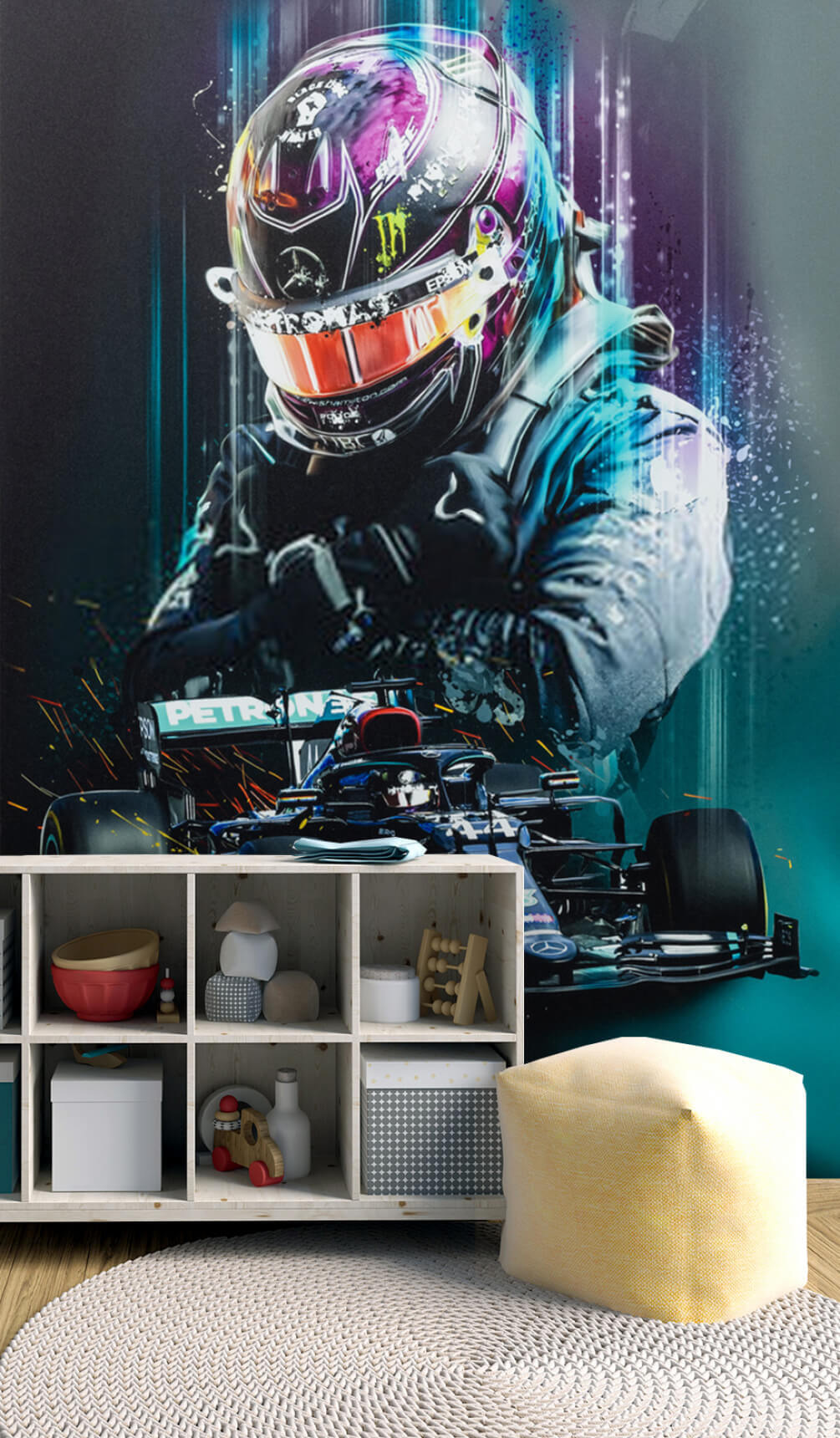 Poczuj potrzebę prędkości każdego dnia dzięki tej niesamowitej fototapecie przedstawiającej osobę w kasku – idealnej dla każdego entuzjasty samochodów! Wyobraź to sobie: chłodne, ostre linie samochodu wyścigowego, żywe odcienie czerwieni i błękitu na kasku oraz niemal namacalna energia, która wydaje się buchać ze ściany. To tak, jakby uchwycić emocje wyścigu na żywo w swoim ulubionym pokoju. Wyobraź sobie dreszczyk emocji, gdy masz to w swojej przestrzeni – niezależnie od tego, czy jest to pokój nastolatka, męska jaskinia, czy nawet salon.