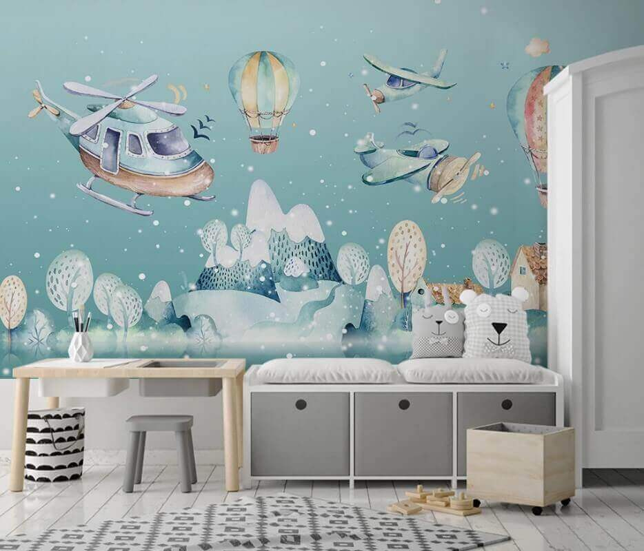 Rozjaśnij każde pomieszczenie dzięki tej uroczej fototapecie w stylu akwareli, przedstawiającej zabawne helikoptery i kolorowe balony na ogrzane powietrze. To jak mini przygoda na Twojej ścianie! Wyobraź sobie: dzieci zachwycające się fantazyjną sceną, marzące o lataniu wysoko w przestworzach. Delikatne odcienie błękitu i żywe barwy tworzą nastrojowe tło, które jest zarówno relaksujące, jak i inspirujące — idealne do pokoju dziecięcego lub pokoju zabaw. Poza tym, kto nie uśmiechnąłby się na widok tych małych samolotów przelatujących obok? Wywoła radość i pobudzi wyobraźnię, tworząc scenę dla niezliczonych opowieści i niekończącej się zabawy. Odrobina cudowności dla każdego domu!