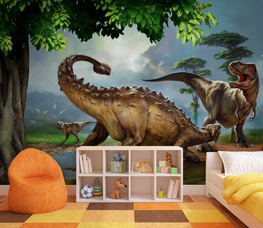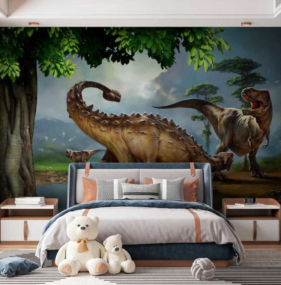 Wyobraź sobie, że wkraczasz w scenę z przebojowego filmu o dinozaurach – ta fototapeta ścienna jest dokładnie taka! Przedstawia dinozaura większego niż żywy, z długimi rogami i ogonem, który wydaje się rozciągać na całą ścianę. Dzieci oszaleją na jej punkcie, ponieważ, spójrzmy prawdzie w oczy, dinozaury są po prostu fajne. I hej, to nie tylko dla dzieci. Każdy, kto uwielbia odrobinę prehistorycznej przygody w swoim wystroju, uzna tę fototapetę za wielki sukces. To tak, jakby mieć własną jurajską oazę w domu – pomijając dudniące kroki… uff! Idealna do sypialni, pokoju zabaw, a nawet dziwacznych pomieszczeń mieszkalnych. Dzięki żywym kolorom i niesamowitym szczegółom, to prawie jak cofnięcie się do okresu kredy. Podróż w czasie, ktokolwiek? Zmień swoją przestrzeń w miejsce do rozmów i pozwól, aby te starożytne krajobrazy i stworzenia pobudzały wyobraźnię i zachwyt każdego dnia.