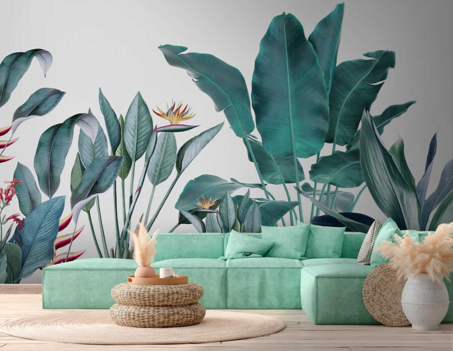 Chcesz odmienić swoją przestrzeń? Sprawdź tę wspaniałą fototapetę ścienną o nazwie “Tropical Foliage with Vivid Colors” – idealną, aby wprowadzić odrobinę dżungli do swojego salonu! Wyobraź sobie, że każdego dnia budzisz się z widokiem na tę żywą zieleń… To jak mini wakacje dla twoich oczu. Mieszanka odważnych kolorów i misternych detali w liściach i kwiatach sprawia, że czujesz się, jakbyś stał w bujnym, tropikalnym raju.