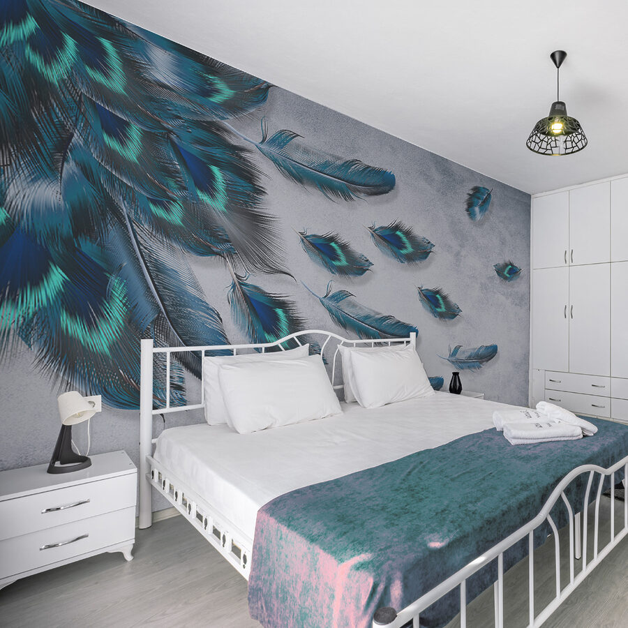 Odmień każde pomieszczenie dzięki czarującej fototapecie ściennej Niebieskie pióra. Wyobraź sobie, że budzisz się przy delikatnej kaskadzie oszałamiających piór, które zdają się tańczyć po twoich ścianach. Spokojne błękity i żywe zielenie tworzą uspokajającą atmosferę, idealną do relaksu po długim dniu. Wyobraź sobie przytulne wieczory z książką, a miękkość wzoru otuli cię spokojem. To jak powiew świeżego powietrza w każdej przestrzeni. Przyjaciele z pewnością zauważą ten wyjątkowy akcent, a kto wie, może to po prostu wywoła rozmowę wypełnioną piórami! Idealny dla tych, którzy chcą dodać odrobinę osobowości do swojego wystroju.