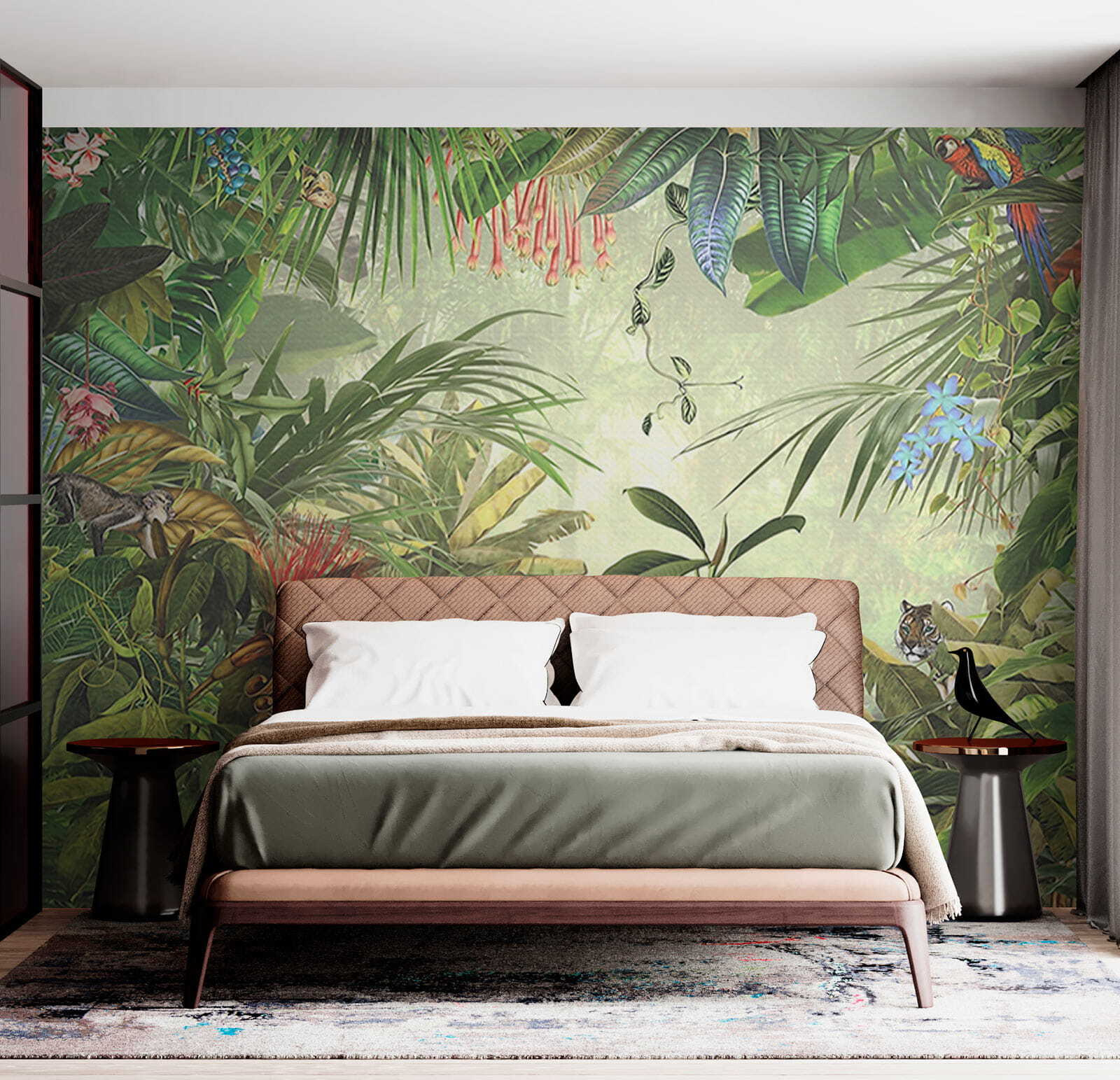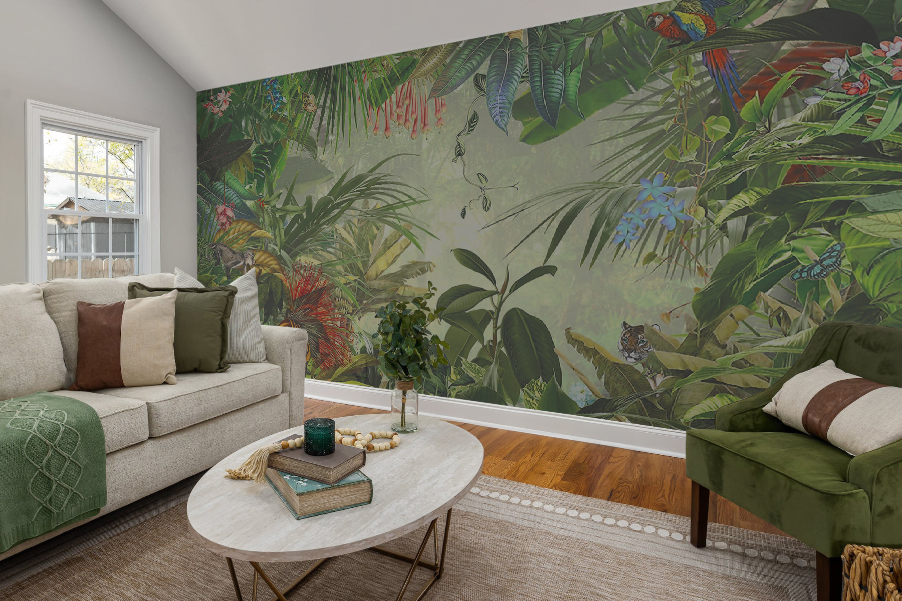 Czy kiedykolwiek chciałeś, aby twoja przestrzeń życiowa przypominała egzotyczną przygodę? Ta fototapeta ścienna “Bujna dżungla” może być idealnym rozwiązaniem. Wyobraź sobie, że budzisz się, bierzesz kawę i patrzysz prosto na tętniący życiem las deszczowy – papugi, małpy, tygrysy… Możesz niemal usłyszeć szelest liści lub poczuć chłodną bryzę dżungli! Kolory są po prostu cudownie głębokie – soczyste zielenie, bogate odcienie ziemi, plamy kwiatów. Idealny dla miłośników przyrody lub każdego, kto pragnie odrobiny dzikiej przyrody w domu. To jak mała ucieczka, bezpośrednio na ścianie! 🌿🦜
