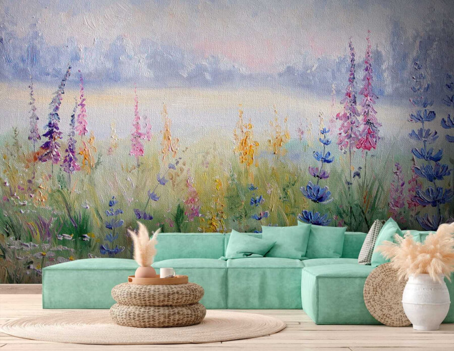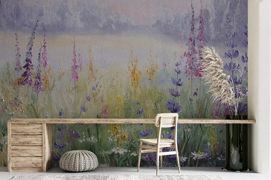 Wnieś odrobinę uroku i spokoju do swojej przestrzeni dzięki fototapecie ściennej “Lavender Blooms in Colorful Field”. Wyobraź sobie, że wkraczasz na pole wypełnione miękkimi, akwarelowymi kwiatami – zachwycającą mieszanką fioletów, żółci i różów, które tańczą na wietrze. Ta fototapeta to nie tylko dzieło sztuki, to doświadczenie – spokojna chwila zamrożona w czasie.