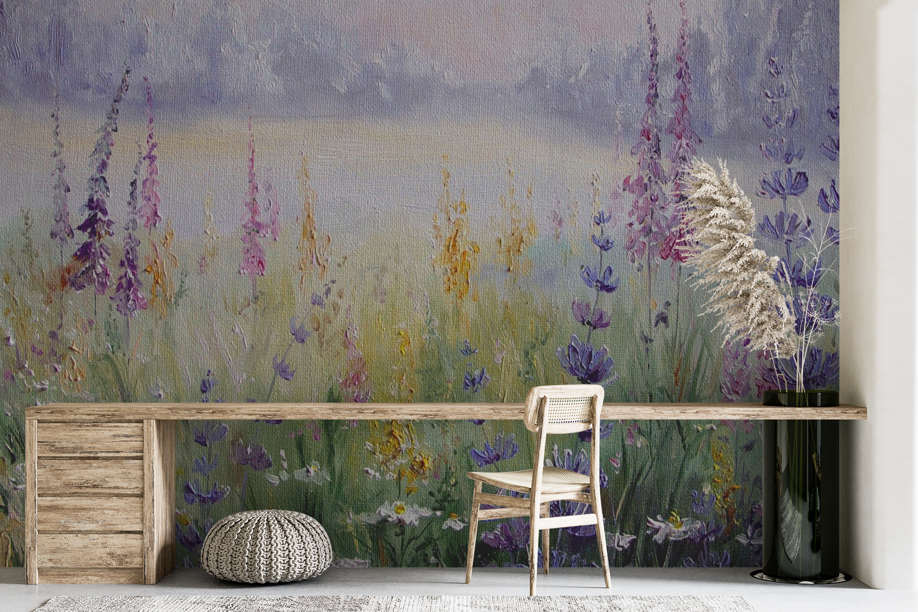 Wnieś odrobinę uroku i spokoju do swojej przestrzeni dzięki fototapecie ściennej “Lavender Blooms in Colorful Field”. Wyobraź sobie, że wkraczasz na pole wypełnione miękkimi, akwarelowymi kwiatami – zachwycającą mieszanką fioletów, żółci i różów, które tańczą na wietrze. Ta fototapeta to nie tylko dzieło sztuki, to doświadczenie – spokojna chwila zamrożona w czasie.