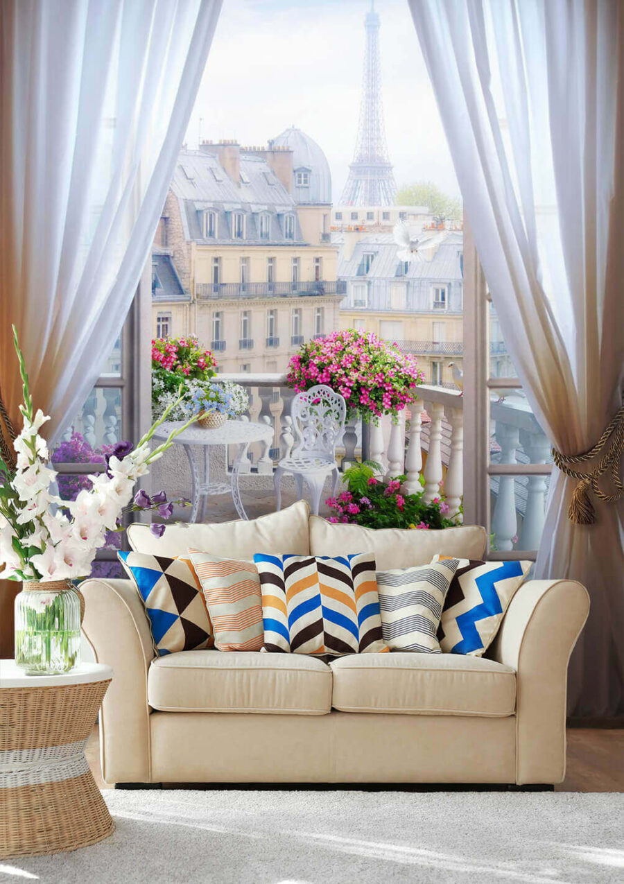 Zmień każde pomieszczenie dzięki tej wspaniałej fototapecie, która wprowadzi do Twojego domu urok paryskiego balkonu. Wyobraź sobie, że budzisz się, podziwiając widok kwitnących kwiatów i Wieży Eiffla prześwitującej przez prześwitujące zasłony – to jak życie na pocztówce! Ta fototapeta oddaje tę wymarzoną ucieczkę, idealną dla marzycieli i miłośników niepowtarzalnych dekoracji. Wyobraź sobie, że popijasz poranną kawę w otoczeniu bujnych kwiatów i delikatnej bryzy. To mały kawałek raju bez jet lag. Dlaczego więc nie pozwolić swoim ścianom opowiedzieć historii?