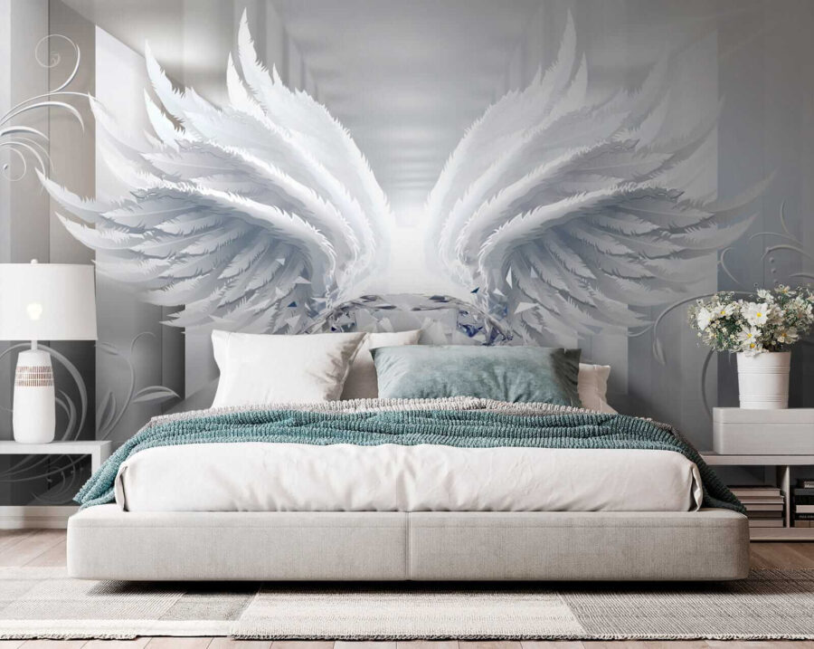 Przekształć dowolny pokój w senną ucieczkę dzięki tej kapryśnej fototapecie ściennej z majestatyczną parą skrzydeł tulących promienny element centralny. To jak uścisk dla twoich ścian – poważnie! Delikatny wzór zapewnia uczucie lekkości, sprawiając, że przestrzeń staje się przestronna i otwarta. Wyobraź sobie, że budzisz się z tym spokojnym pięknem lub organizujesz przytulne spotkanie, podczas którego goście nie mogą powstrzymać się od podziwiania sztuki. Idealna do dodania osobowości bez przytłaczania przestrzeni, ta fototapeta zachęca do marzeń i inspiruje kreatywność. Idealna dla osób o kapryśnym sercu.