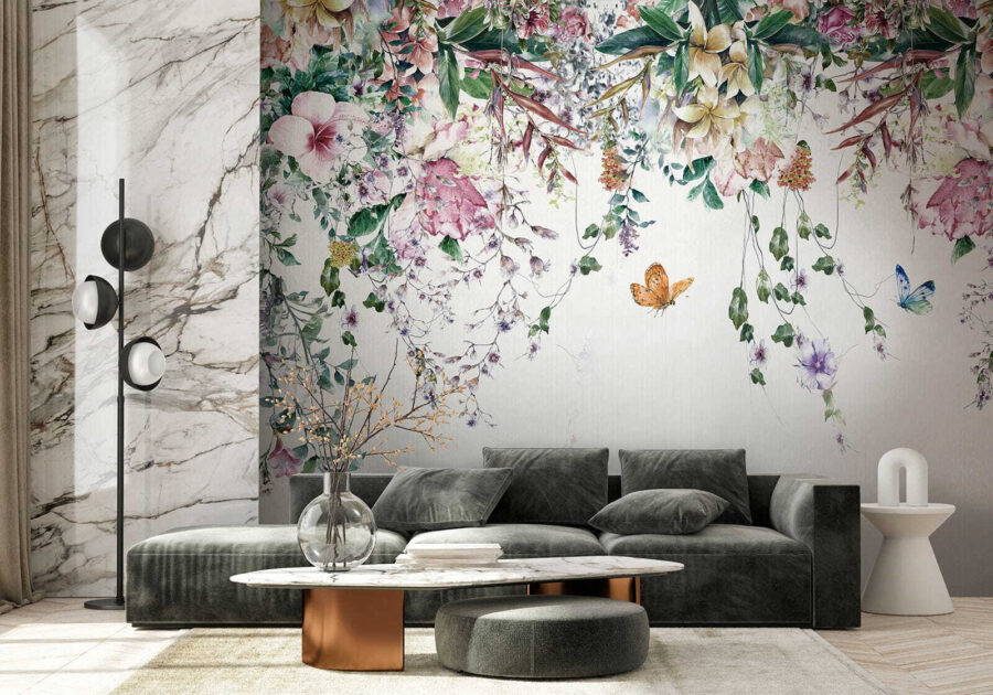 Ta fototapeta to nie tylko dekoracja – to nastrój. Wyobraź sobie, jak relaksujesz się po długim dniu, otoczony kwiatami i unoszącymi się motylami… spokojnie, prawda? To jak posiadanie własnego kawałka raju. Po co więc czekać? Pozwól swoim ścianom opowiedzieć historię pełną elegancji i żywego uroku!