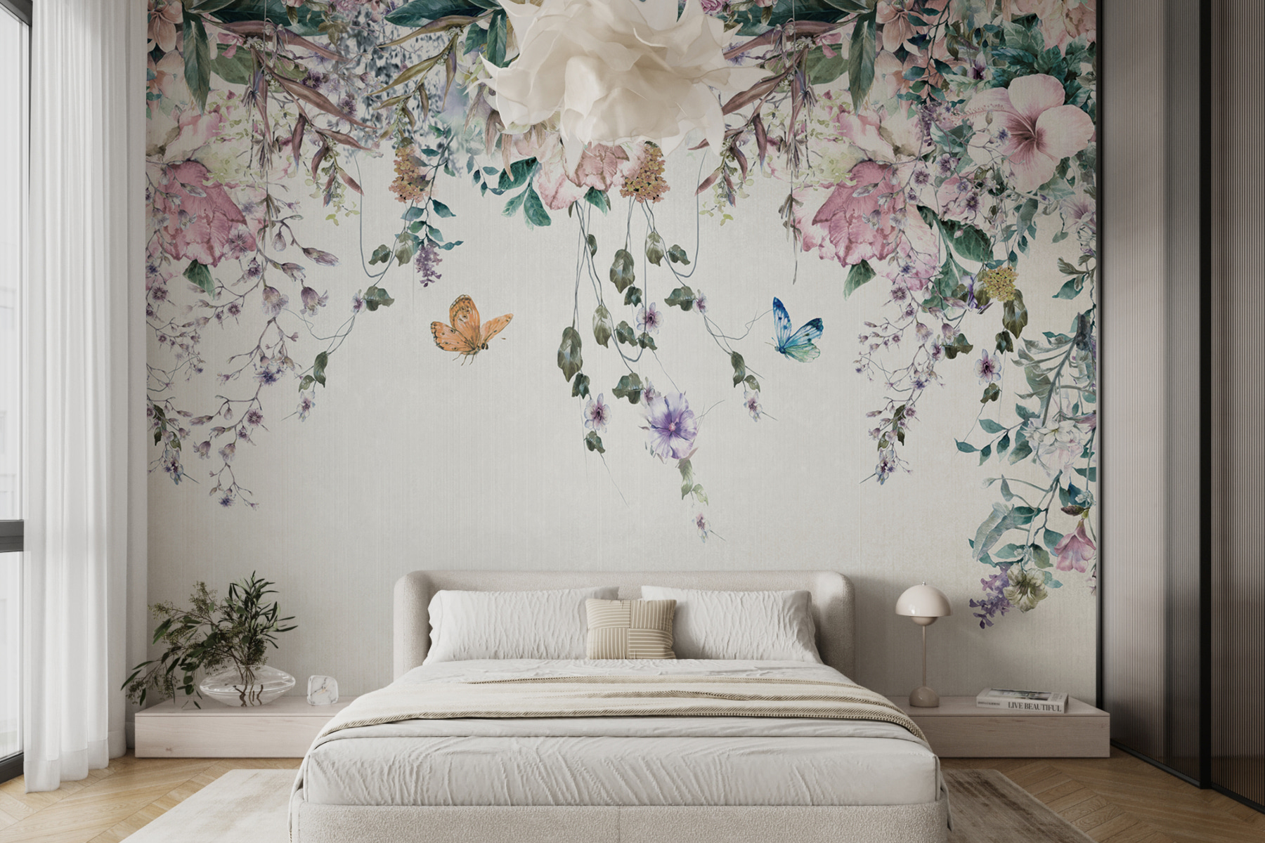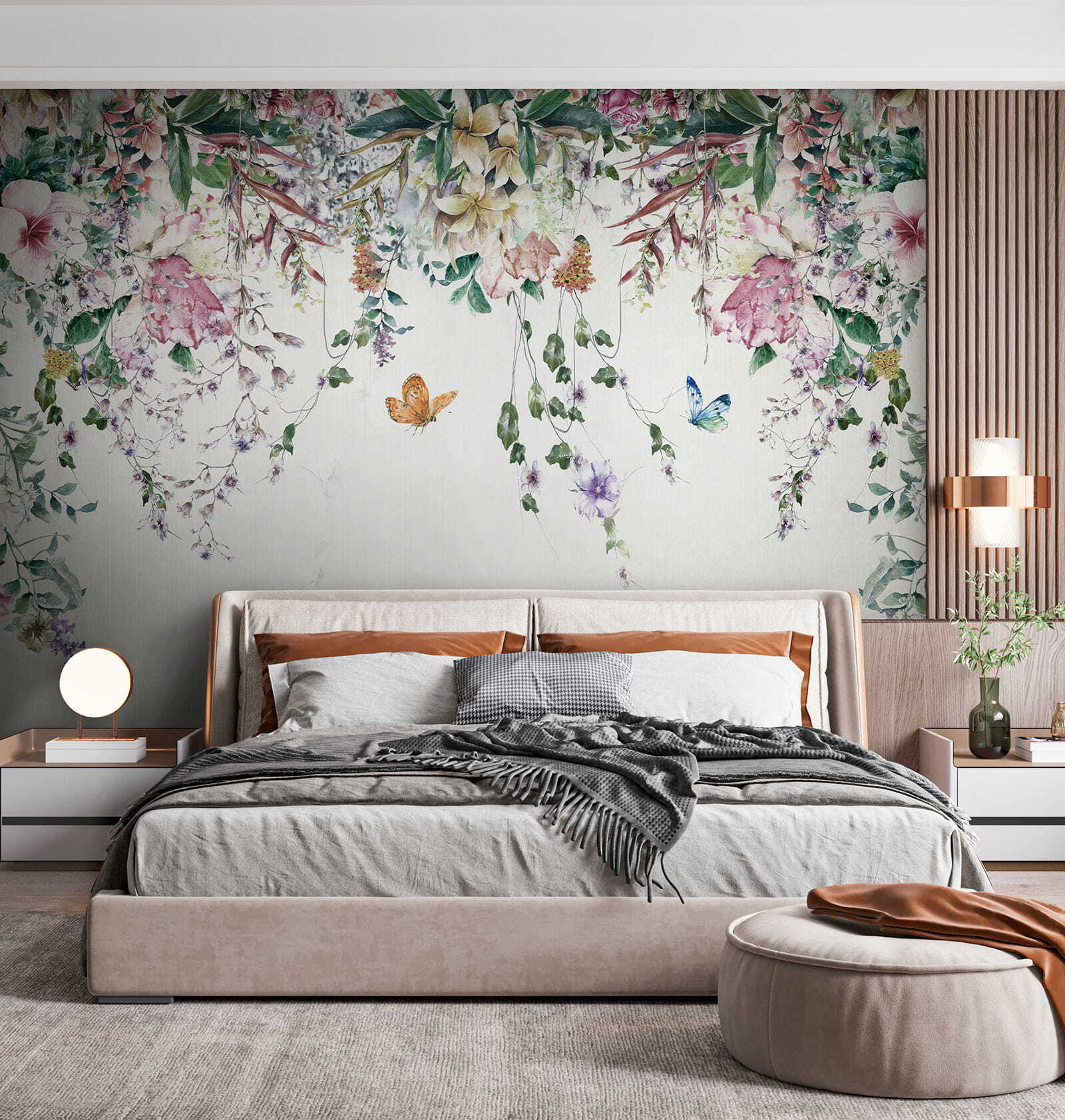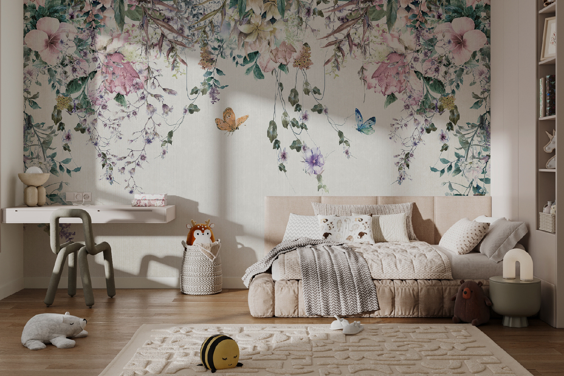 Przekształć swoją przestrzeń w wymarzony ogród z fototapetą ścienną “Motyle fruwają pośród kwitnącego raju”. Ta akwarelowa fototapeta ścienna jest jak wejście do bajki – delikatne motyle i żywe kwiaty tańczą po ścianach. Wyobraź sobie, że wchodzisz do pokoju, który natychmiast podnosi cię na duchu dzięki feerii barw i wdzięku.