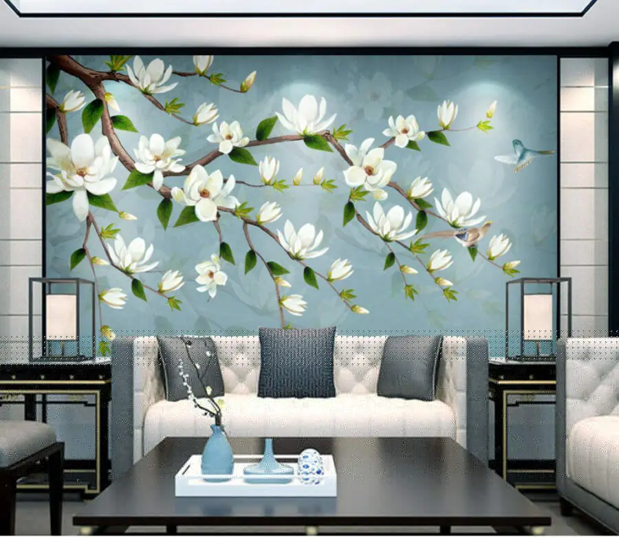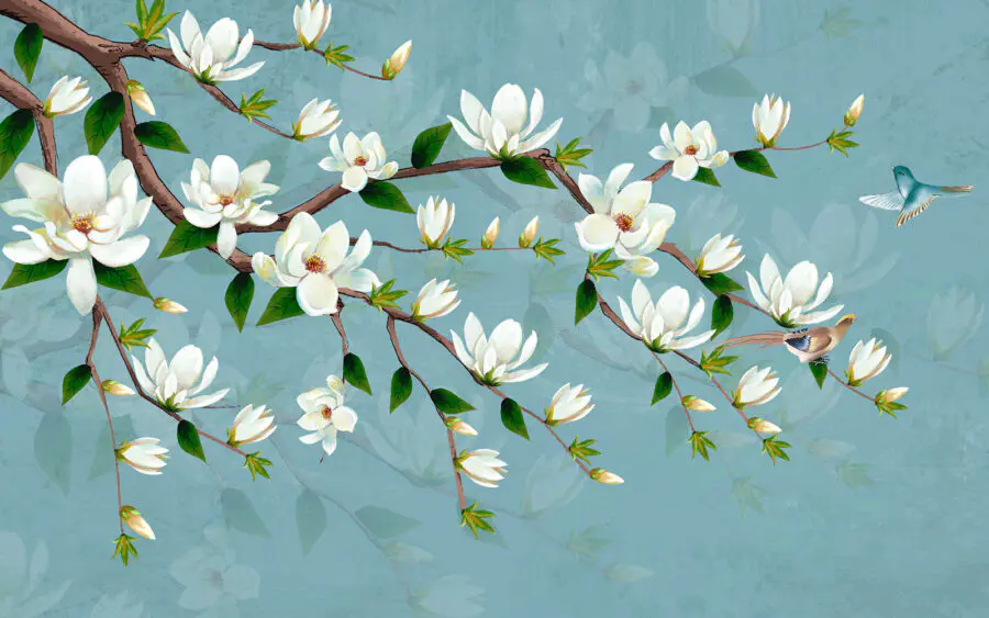 Transform your space with this enchanting wall mural, “White Flowers on a Branch.” Imagine walking into a room where delicate blossoms dance gently across a soft blue background. It’s like nature decided to settle right on your wall! The watercolor style gives it a dreamy vibe, making it perfect for a cozy nook or a serene bedroom. Picture yourself sipping tea while staring at this charming scene—it’s a little escape into peace. Plus, the subtle birds add a touch of whimsy; they might even inspire daydreams about springtime adventures. Ideal for anyone wanting to bring a breath of fresh air indoors!