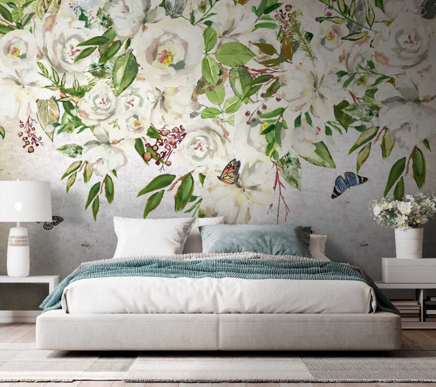 Zmień swoje wnętrze dzięki tej uroczej fototapecie przedstawiającej białe kwiaty i fruwające motyle. To jak wejście do tajemniczego ogrodu bez irytujących owadów – chyba że zaliczysz do nich te urocze motyle! Wyobraź sobie: delikatne płatki i intensywna zieleń pokrywające Twoje ściany, wprowadzające do domu delikatną bryzę natury. Ta fototapeta emanuje spokojem, idealnie nadając się do przytulnego kącika do czytania lub spokojnej sypialni. Wyobraź sobie, że zwijasz się w kłębek z dobrą książką, otoczony uspokajającą atmosferą tego dzieła sztuki. To nie tylko dekoracja; to doświadczenie, które czeka, aby rozkwitnąć! Niech Twoje ściany opowiedzą historię.