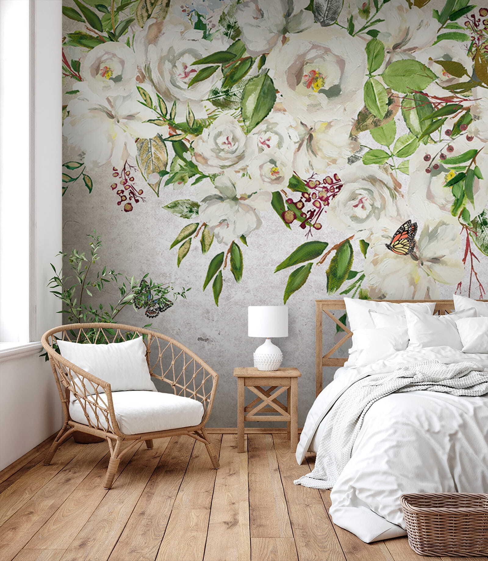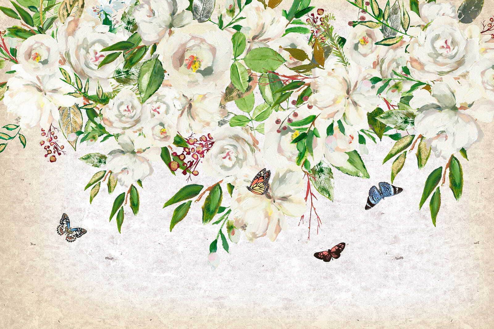Zmień swoje wnętrze dzięki tej uroczej fototapecie przedstawiającej białe kwiaty i fruwające motyle. To jak wejście do tajemniczego ogrodu bez irytujących owadów – chyba że zaliczysz do nich te urocze motyle! Wyobraź sobie: delikatne płatki i intensywna zieleń pokrywające Twoje ściany, wprowadzające do domu delikatną bryzę natury. Ta fototapeta emanuje spokojem, idealnie nadając się do przytulnego kącika do czytania lub spokojnej sypialni. Wyobraź sobie, że zwijasz się w kłębek z dobrą książką, otoczony uspokajającą atmosferą tego dzieła sztuki. To nie tylko dekoracja; to doświadczenie, które czeka, aby rozkwitnąć! Niech Twoje ściany opowiedzą historię.