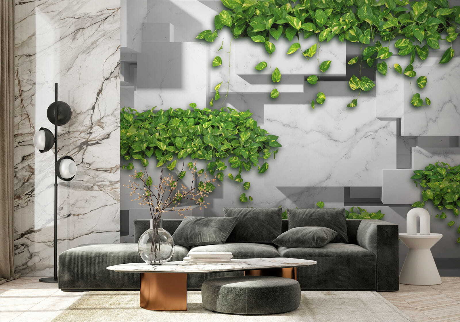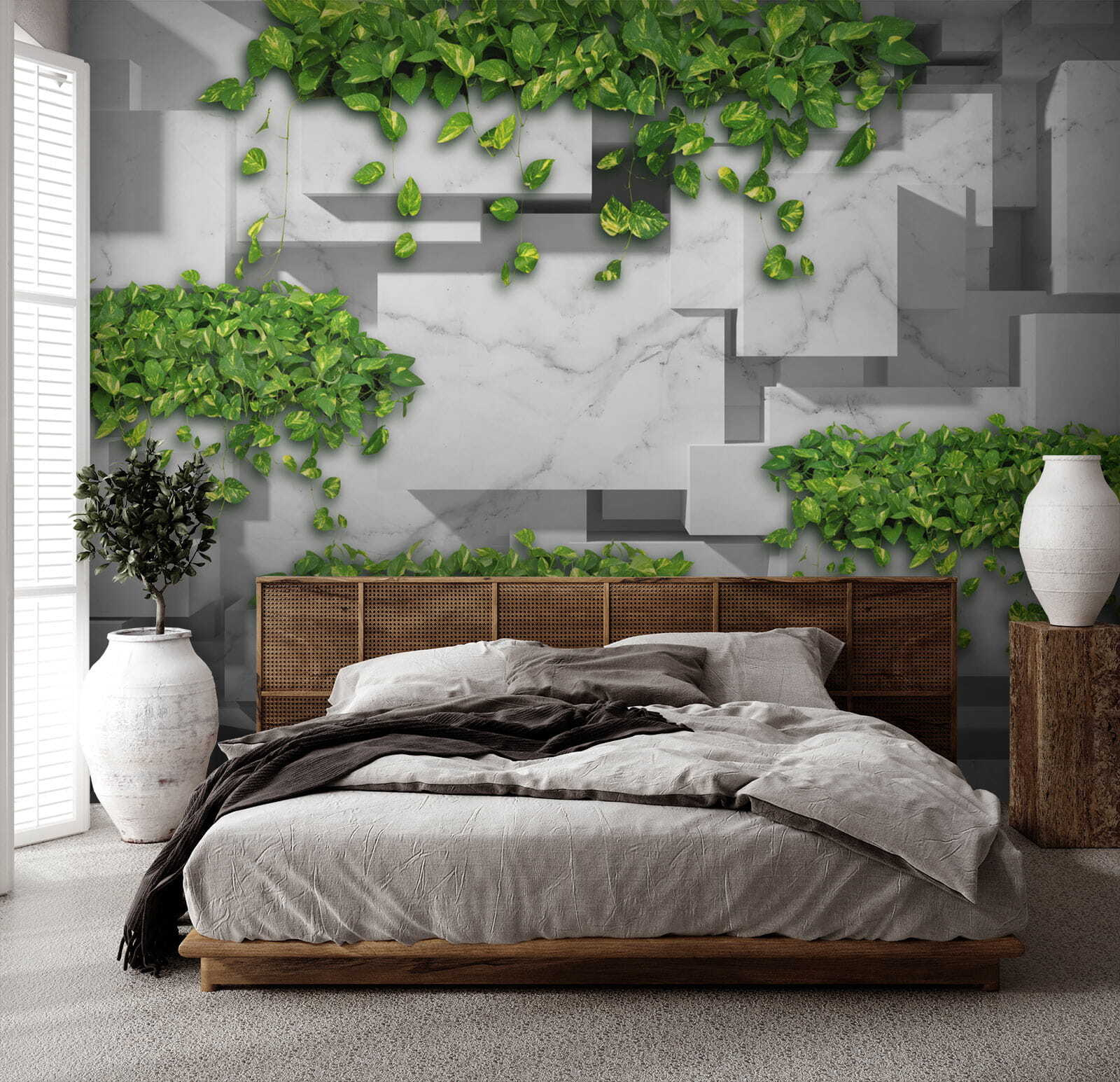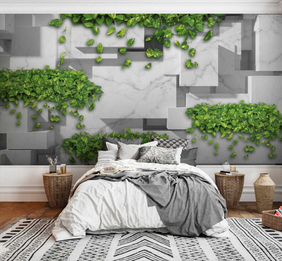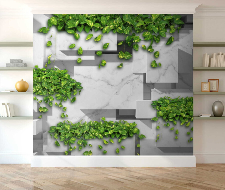 Zobacz tę uderzającą fototapetę ścienną “Zielone liście na geometrycznym marmurze” – to tak, jakby natura wzięła lekcje projektowania! Wyobraź sobie, że wchodzisz do pokoju, w którym świeże zielone liście spływają kaskadą po eleganckim marmurowym tle. To nie tylko fototapeta; to mini ucieczka do eleganckiej oazy w dżungli. Idealna do salonu, sypialni, a nawet eleganckiego biura. Geometryczny wzór nadaje jej nowoczesnego charakteru, a zielone liście dodają odrobinę spokoju. Jest odważny, ale uspokajający – jak powiew świeżego powietrza na ścianach. I hej, kto nie potrzebuje odrobiny bujnej zieleni połączonej z wyrafinowaniem w swoim życiu? Spektakularne połączenie stylów!