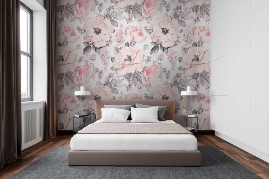Zmień nudną ścianę w kwitnący raj dzięki tej oszałamiającej fototapecie z uroczym wzorem kwiatów i liści. Wyobraź sobie, że popijasz kawę w otoczeniu delikatnych różowych kwiatów – naprawdę, komu potrzebny jest ogród, skoro ma się coś takiego?