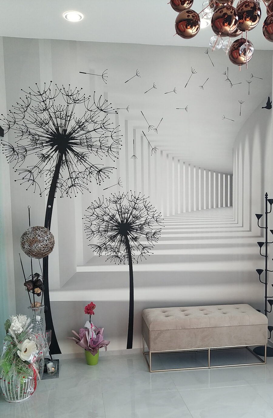 Wyobraź sobie, że wchodzisz do pokoju i wita cię kapryśny taniec mniszków lekarskich! Ta fototapeta ścienna, zatytułowana “Black Silhouette of a Dandelion”, właśnie to robi – to jak uchwycenie delikatnego, wietrznego dnia we wnętrzu. Uderzające czarne sylwetki na jasnym tle tworzą oszałamiający kontrast. Fajne jest to, że wydaje się rozciągać przestrzeń, dzięki czemu każde pomieszczenie wydaje się większe… i bardziej otwarte. Dodatkowo, jest coś uspokajającego w tych pływających nasionach, prawda? To prawie tak, jakby można było poczuć delikatny powiew wiatru.