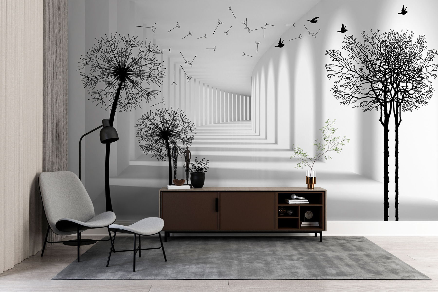 Wyobraź sobie, że wchodzisz do pokoju i wita cię kapryśny taniec mniszków lekarskich! Ta fototapeta ścienna, zatytułowana “Black Silhouette of a Dandelion”, właśnie to robi – to jak uchwycenie delikatnego, wietrznego dnia we wnętrzu. Uderzające czarne sylwetki na jasnym tle tworzą oszałamiający kontrast. Fajne jest to, że wydaje się rozciągać przestrzeń, dzięki czemu każde pomieszczenie wydaje się większe… i bardziej otwarte. Dodatkowo, jest coś uspokajającego w tych pływających nasionach, prawda? To prawie tak, jakby można było poczuć delikatny powiew wiatru.