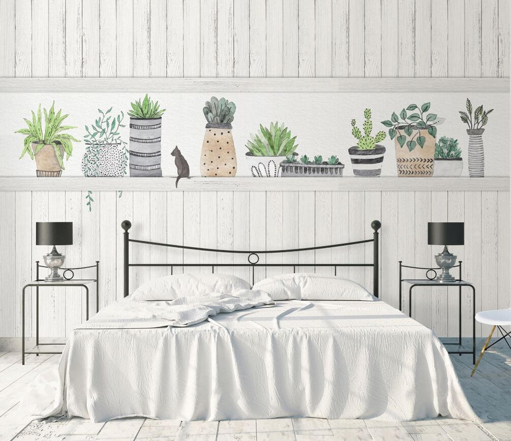 Bring a touch of nature inside with the “Row of Potted Plants” wall mural. Imagine stepping into a cozy nook where these stylish pots house your favorite greens—without the worry of overwatering! The soothing colors and playful designs create a backdrop that whispers relaxation. Picture sipping coffee while the kid or the cat plays next to this mural; it practically feels alive. It’s like inviting a garden into your home, minus the dirt on your shoes. Perfect for any room needing a splash of cheer, it’s a vibe that says, “Hey, let’s chill and grow together.”
